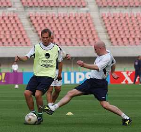 MONDIALI CALCIO STADIO DI NIIGATA (GIAPPONE) 31/05/2002 ALLENAMENTO DELLA NAZIONALE DELL'IRLANDA NELLA FOTO LEE CARSLEY E JASON McATEER AGENZIA ALDO LIVERANI SAS
