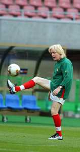 MONDIALI CALCIO STADIO DI NIIGATA (GIAPPONE) 31/05/2002 ALLENAMENTO DELLA NAZIONALE DEL CAMERUN NELLA FOTO L'ALLENATORE WINFRIED SCHAEFER AGENZIA ALDO LIVERANI SAS