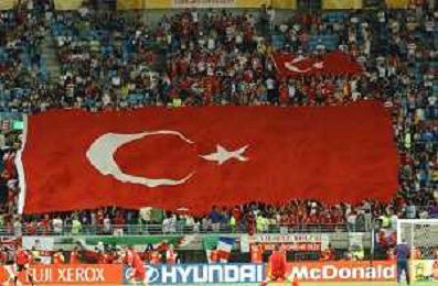 OSAKA (giappone) 22/06/2002 MONDIALI CALCIO 2002 SENEGAL - TURCHIA NELLA FOTO TIFOSI CON GRANDE BANDIERA DELLA TURCHIA AGENZIA ALDO LIVERANI SAS