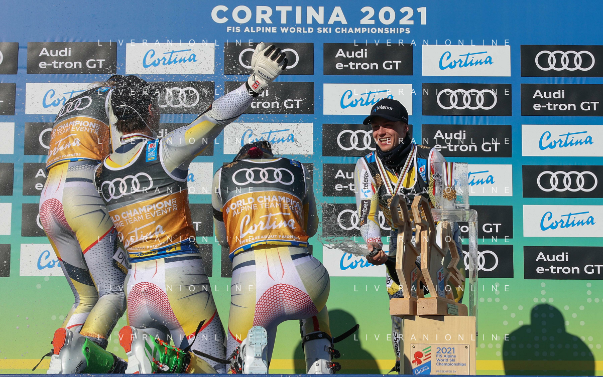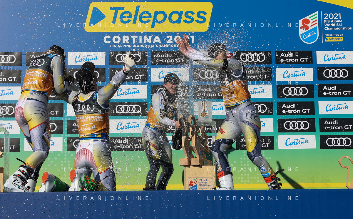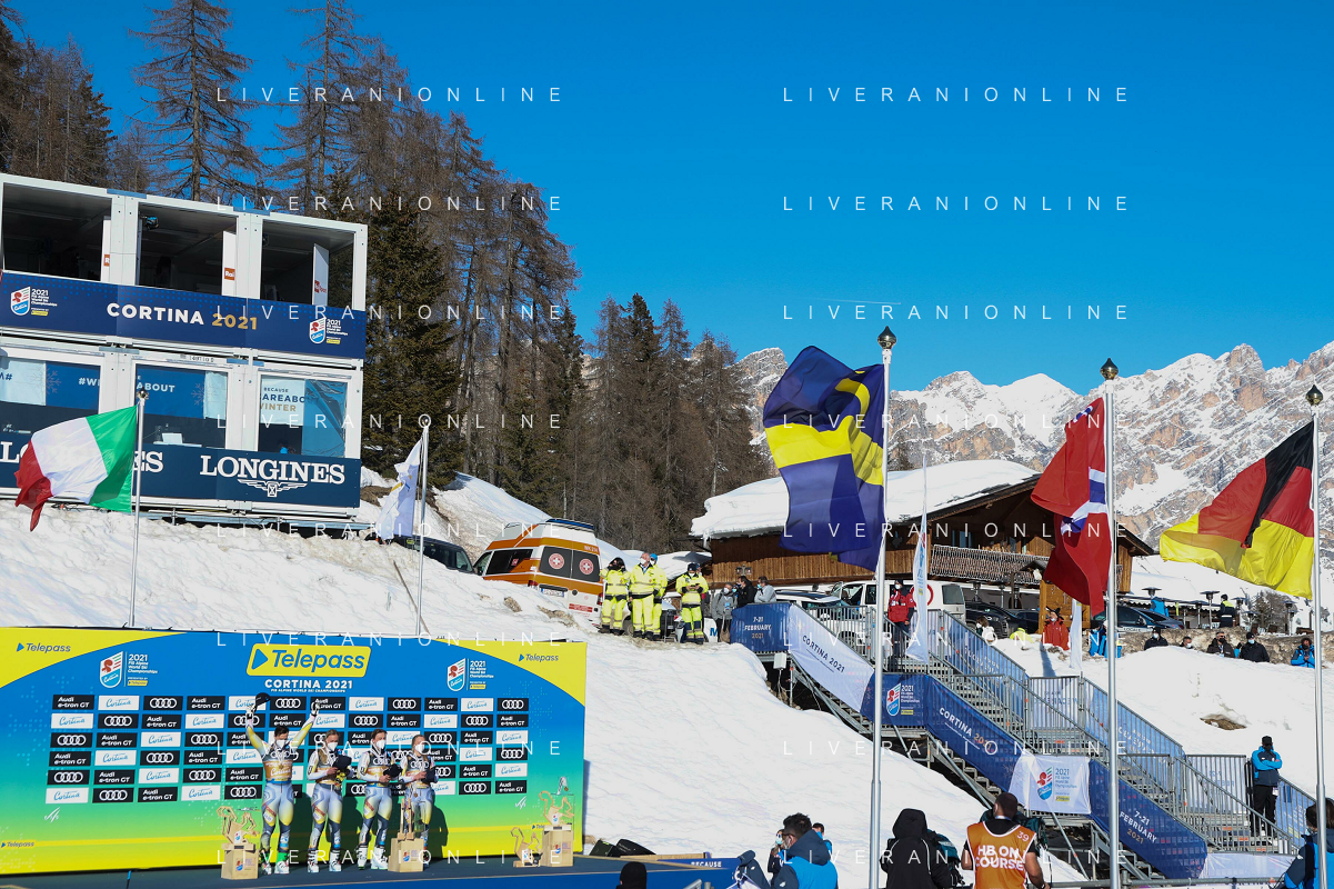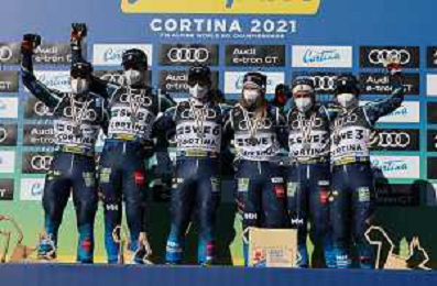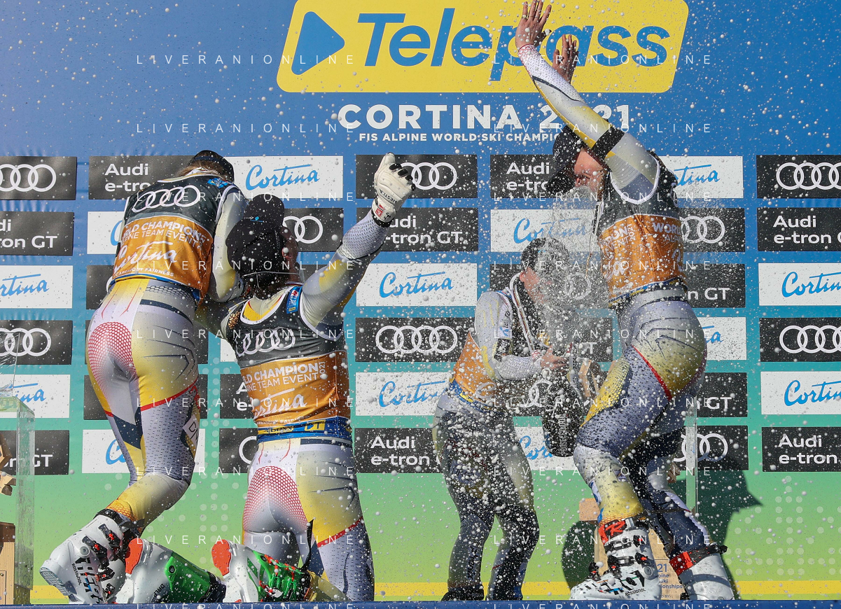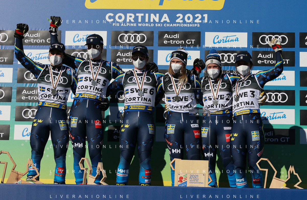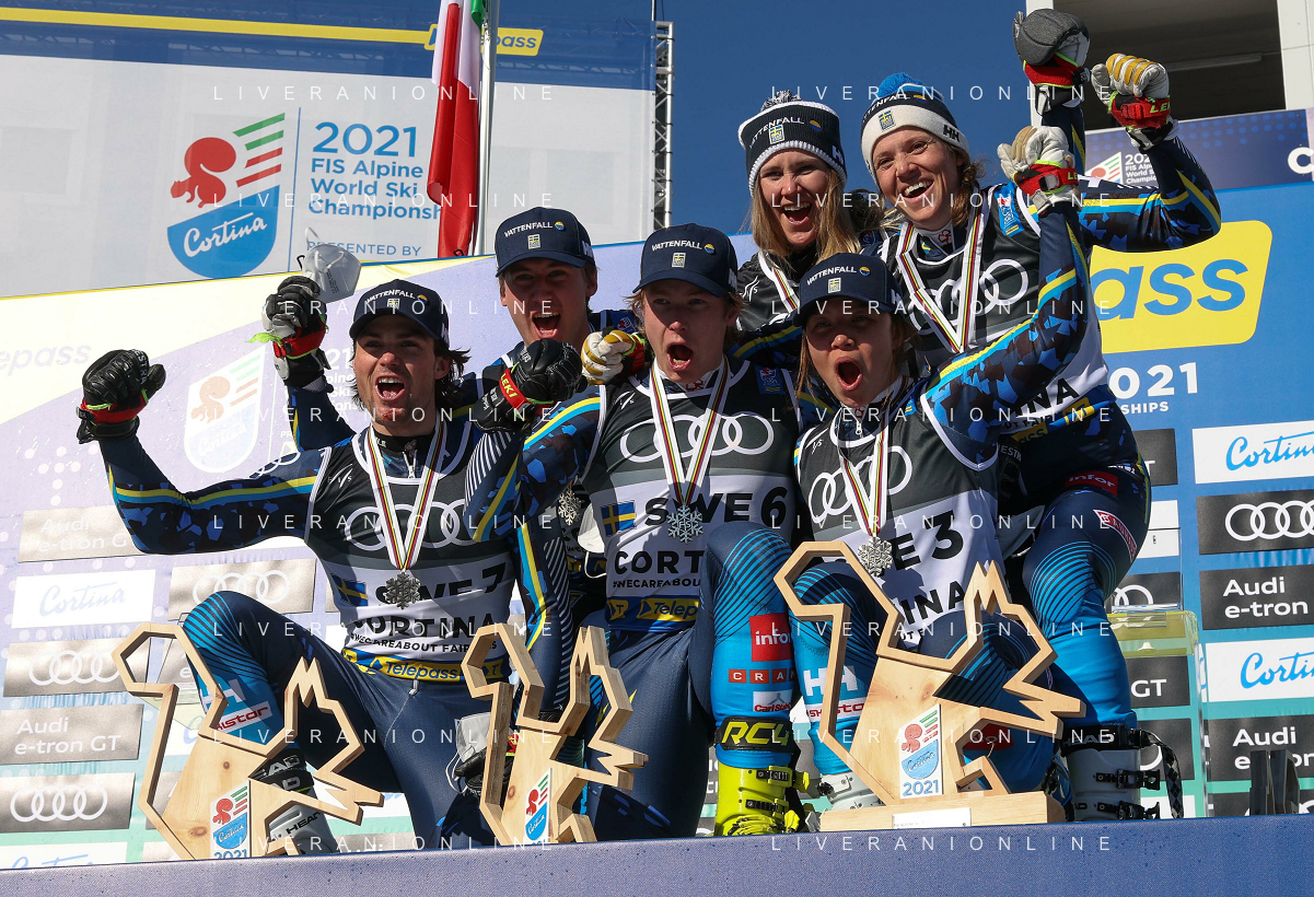 Sergio Bisi/LM - 2021 FIS Alpine World SKI Championships - Alpine Team Parallel - alpine ski race 17 February 2021 - Rumerlo, cortina d';ampezzo (bl), Italy Photo showing: Team Sweden Silver Medal @LM/Sergio Bisi AG ALDO LIVERANI SAS