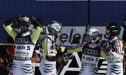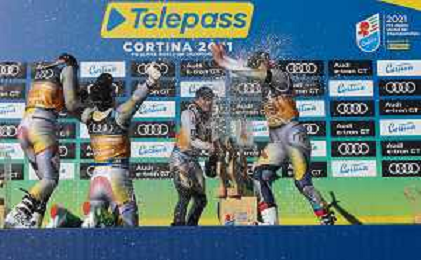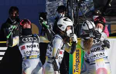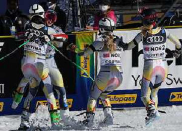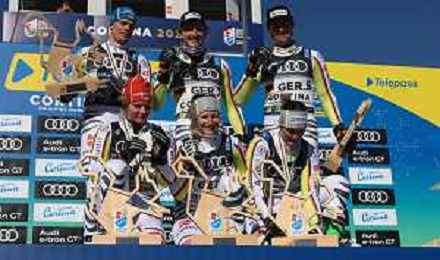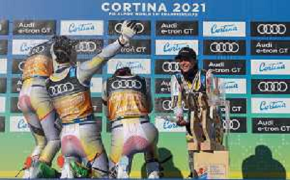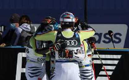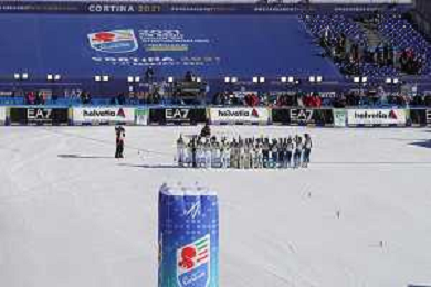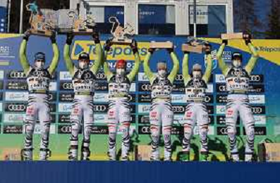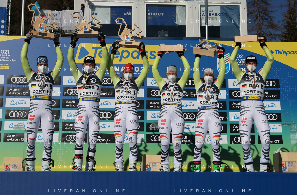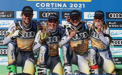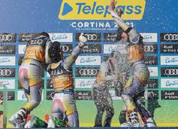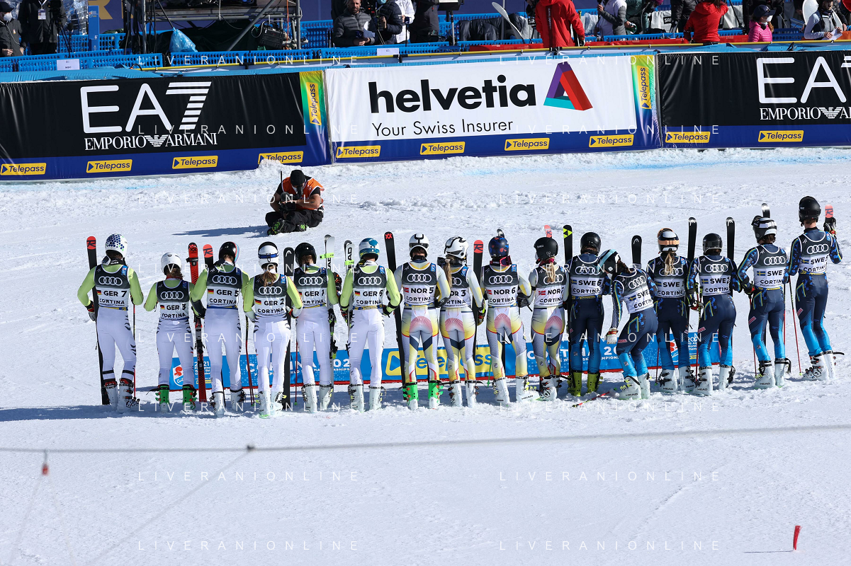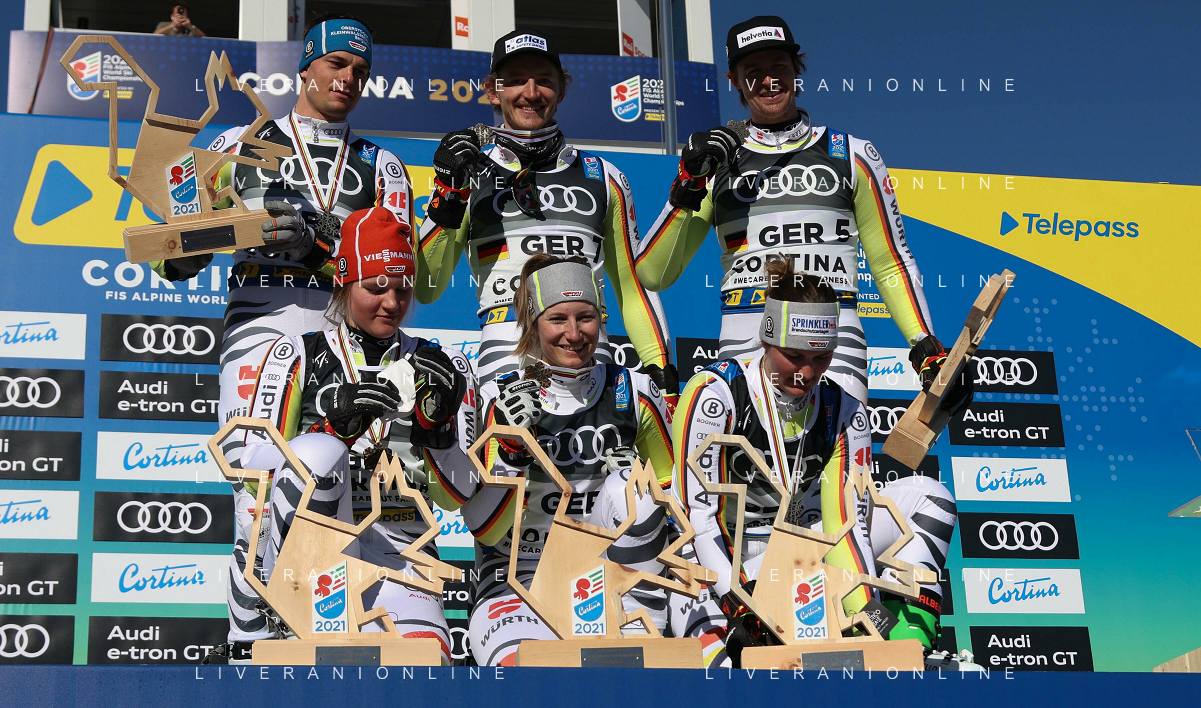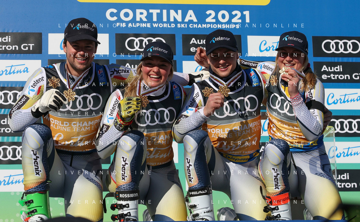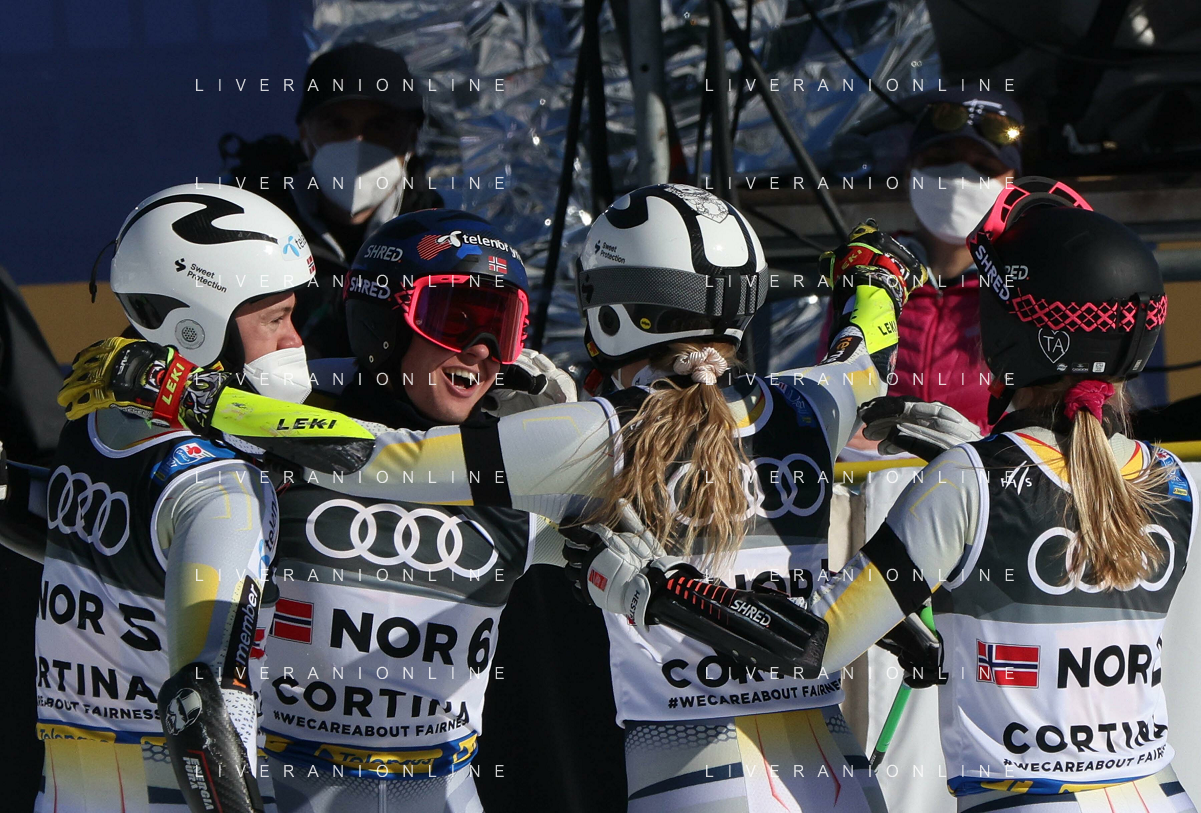 Sergio Bisi/LM - 2021 FIS Alpine World SKI Championships - Alpine Team Parallel - alpine ski race 17 February 2021 - Rumerlo, cortina d';ampezzo (bl), Italy Photo showing: Team Sweden Silver Medal @LM/Sergio Bisi AG ALDO LIVERANI SAS