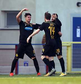 VIRTUS VERONA - RAVENNA CAMPIONATO CALCIO SERIE C LEGA PRO 17.02.2021 NELLA FOTO ESULTANZA DOPO IL GOL DI SERENI - SIMONE FRANCHINI, ENRICO ZANONI E ESPOSITO GIANLUCA ©SANTANDREA/AGENZIA ALDO LIVERANI SAS