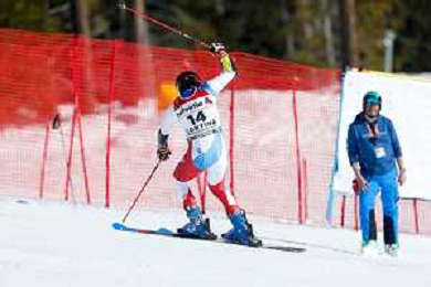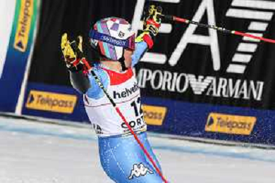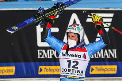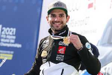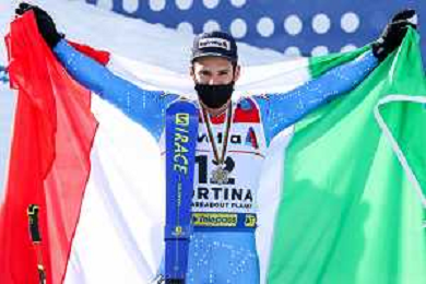 Luca Tedeschi/LM - 2021 FIS Alpine World SKI Championships - Giant Slalom - Men - alpine ski race 19 February 2021 - Labirinti, cortina (bl), Italy Photo showing: Luca de ALIPRANDINI (ITA) with the italian flag @LM/Luca Tedeschi AG ALDO LIVERANI SAS