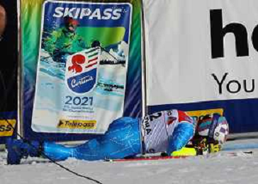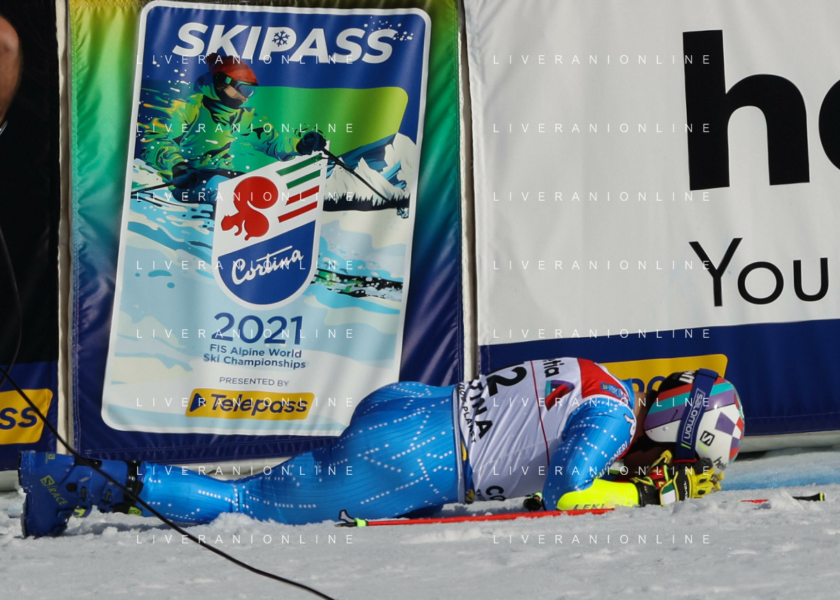 Francesco Scaccianoce/LM - 2021 FIS Alpine World SKI Championships - Giant Slalom - Men - alpine ski race 19 February 2021 - Labirinti, cortina (bl), Italy Photo showing: Stefan Hadalin (SLO) crashes during the first run but is able to qualify for the second run @LM/Francesco Scaccianoce AG ALDO LIVERANI SAS