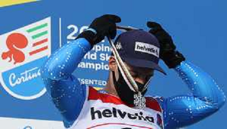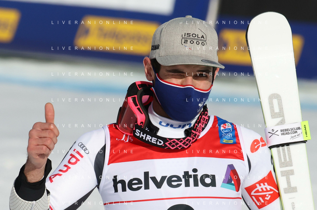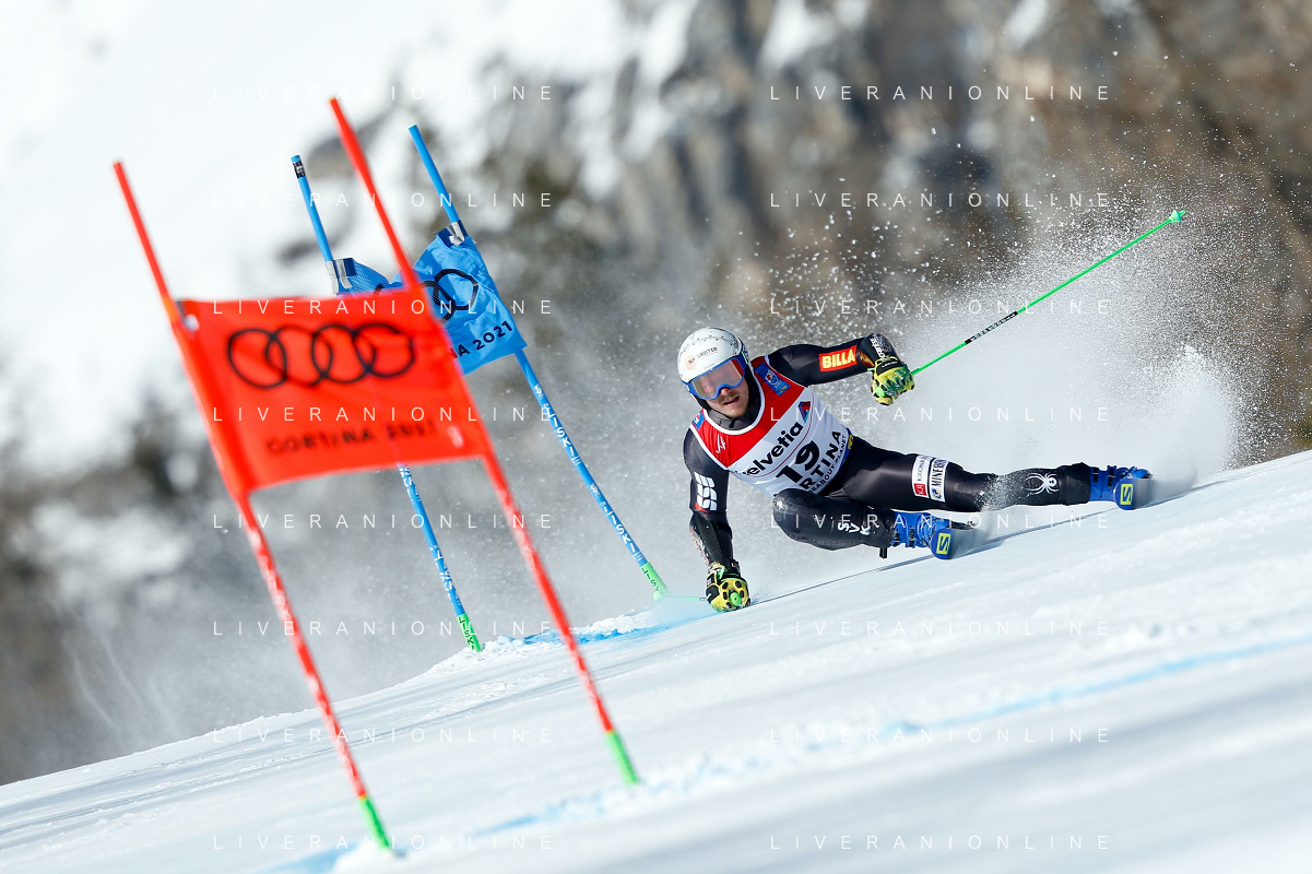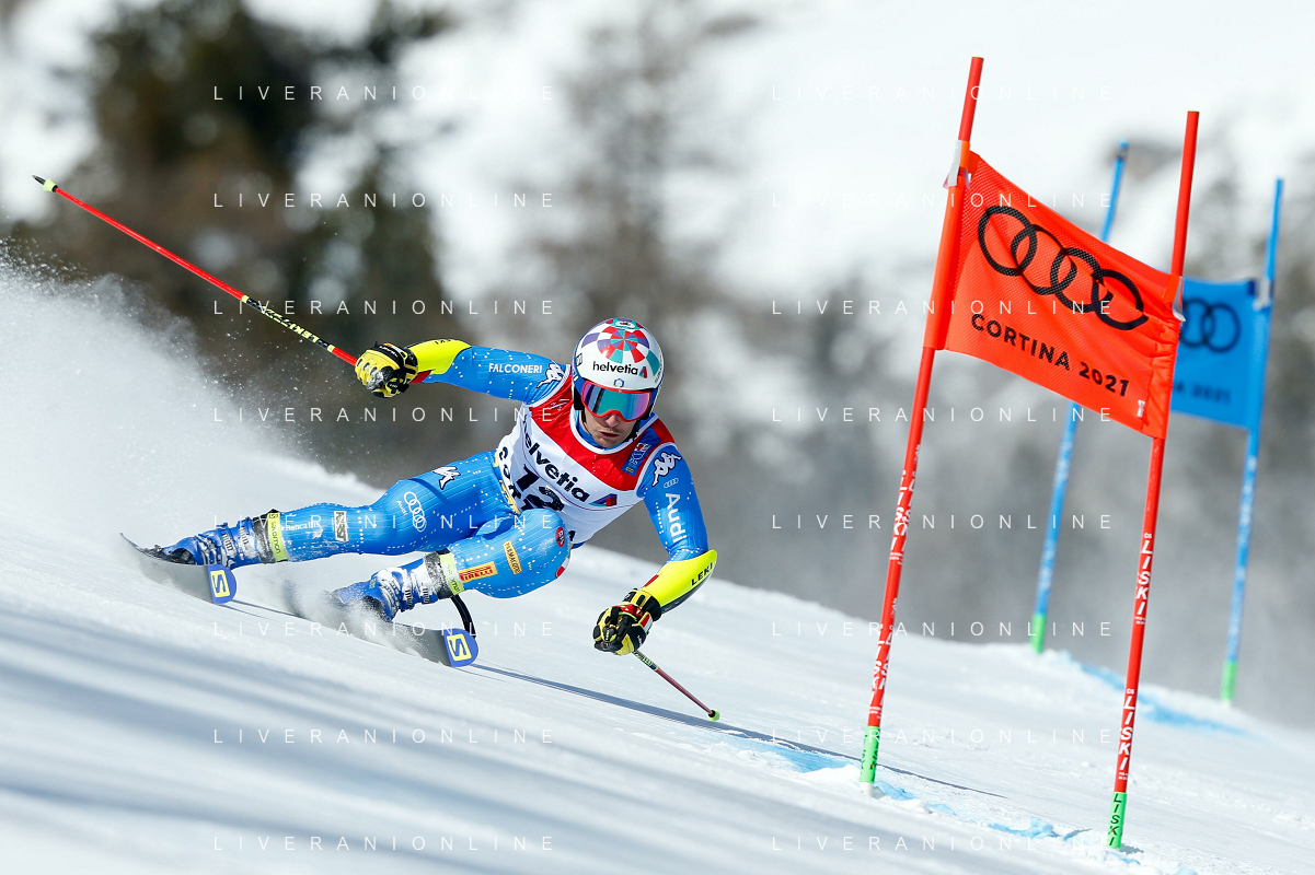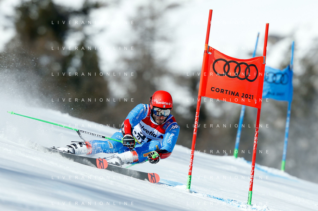 Francesco Scaccianoce/LM - 2021 FIS Alpine World SKI Championships - Giant Slalom - Men - alpine ski race 19 February 2021 - Labirinti, cortina (bl), Italy Photo showing: Loic Meillard (SUI) holds the 7th position after the first run @LM/Francesco Scaccianoce AG ALDO LIVERANI SAS