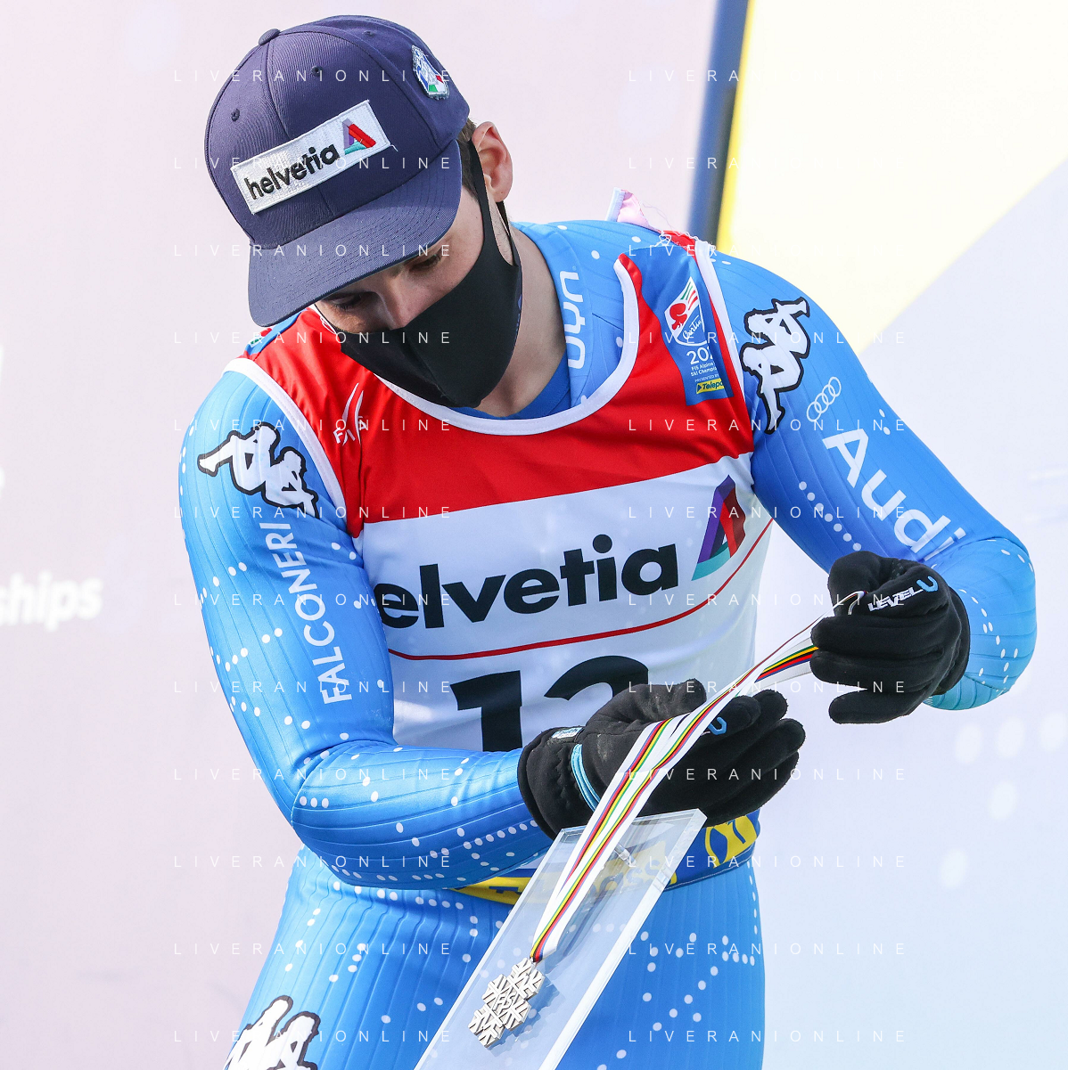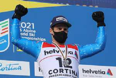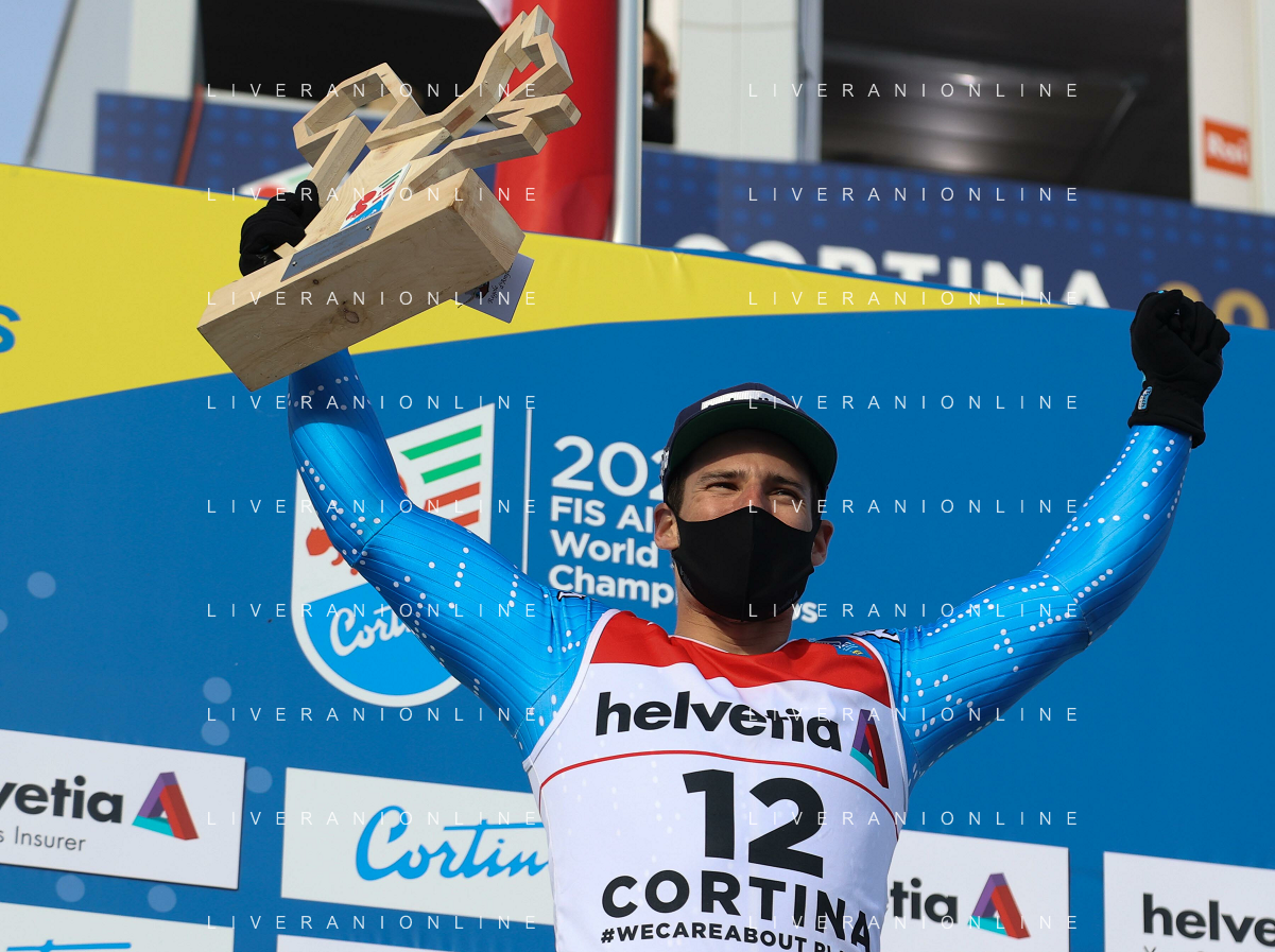 Luca Tedeschi/LM - 2021 FIS Alpine World SKI Championships - Giant Slalom - Men - alpine ski race 19 February 2021 - Labirinti, cortina (bl), Italy Photo showing: Luca de ALIPRANDINI (ITA) silver medal in the men's GS in Cortina d'Ampezzo @LM/Luca Tedeschi AG ALDO LIVERANI SAS