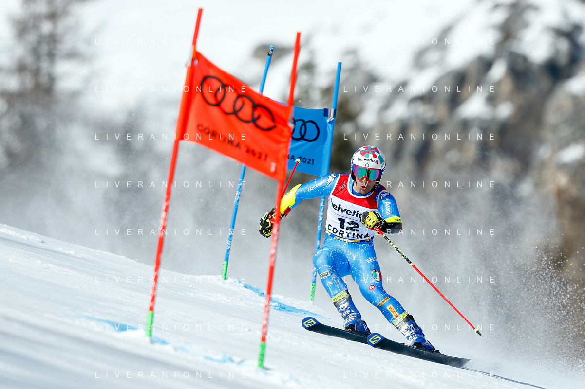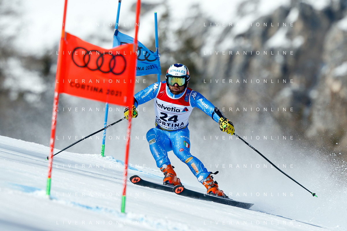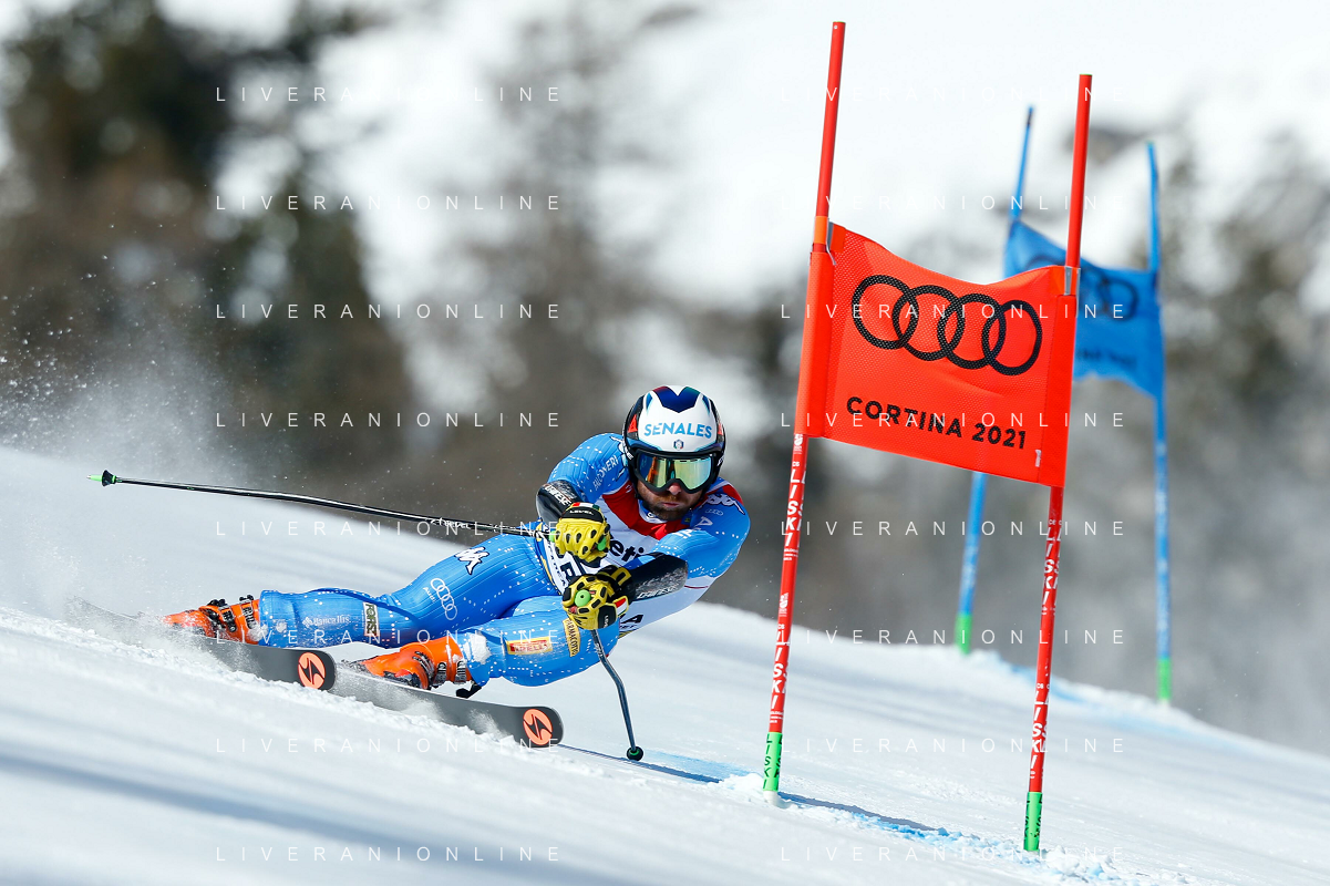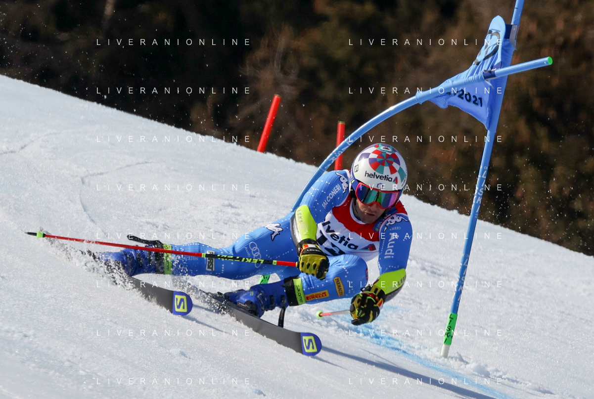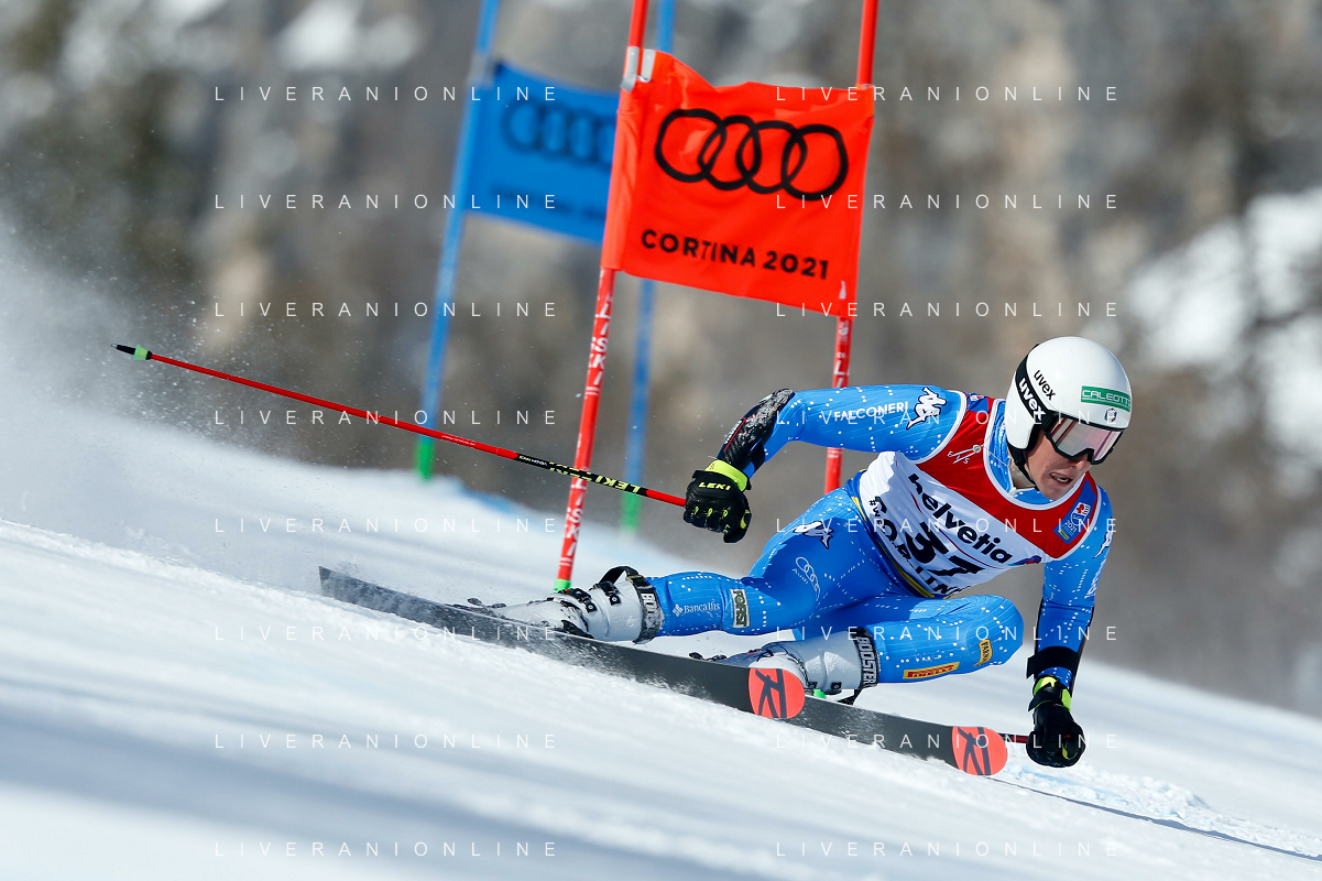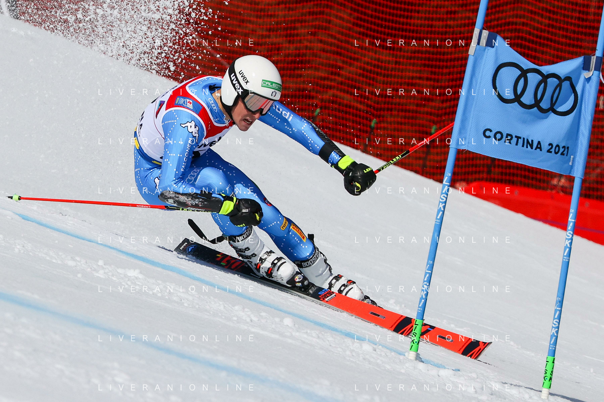 Francesco Scaccianoce/LM - 2021 FIS Alpine World SKI Championships - Giant Slalom - Men - alpine ski race 19 February 2021 - Labirinti, cortina (bl), Italy Photo showing: Giovanni Franzoni (ITA) in action during the first run @LM/Francesco Scaccianoce AG ALDO LIVERANI SAS
