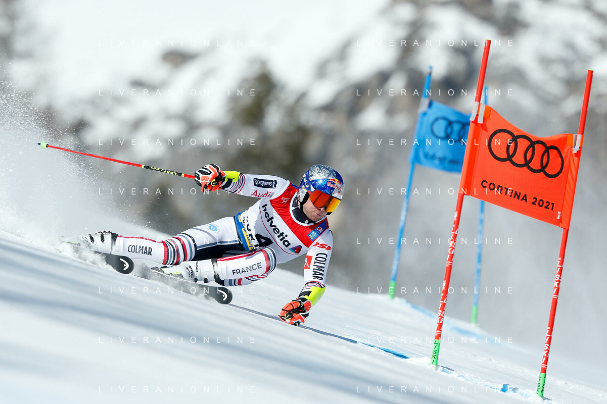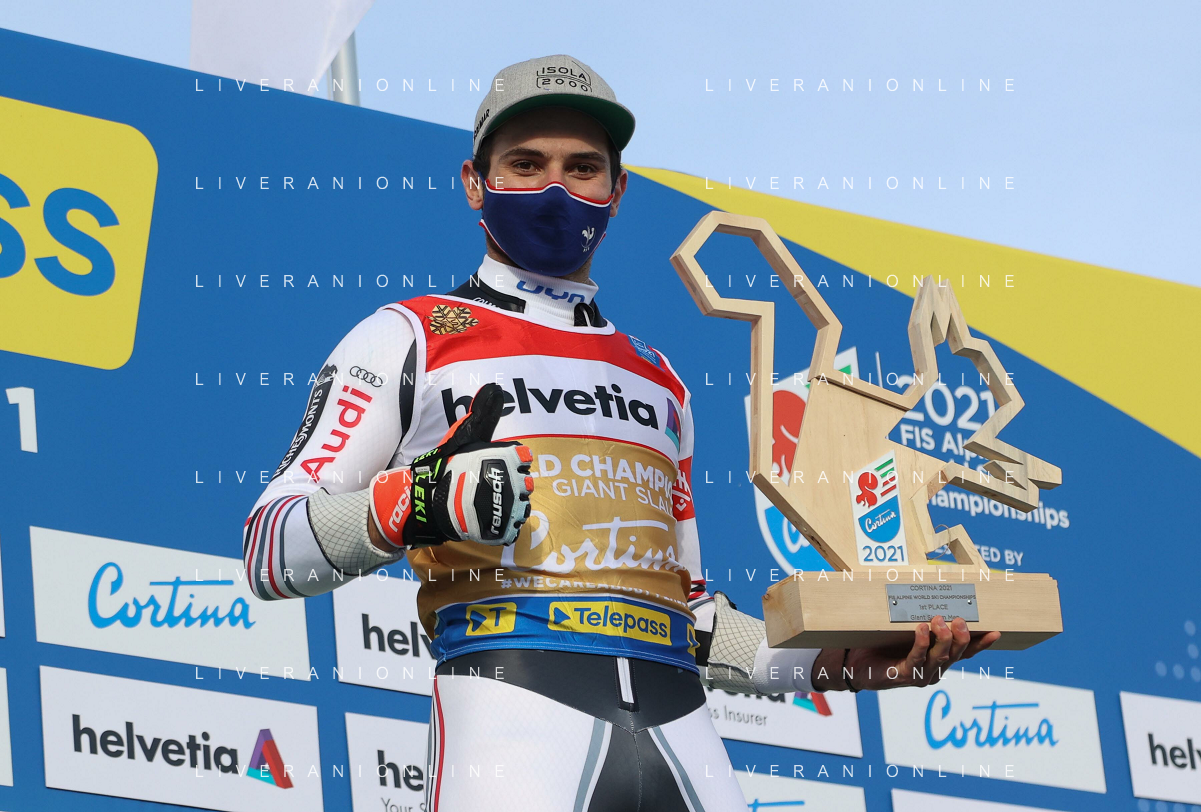 Francesco Scaccianoce/LM - 2021 FIS Alpine World SKI Championships - Giant Slalom - Men - alpine ski race 19 February 2021 - Labirinti, cortina (bl), Italy Photo showing: Alexis Pinturault (FRA) is the fastest after the first run @LM/Francesco Scaccianoce AG ALDO LIVERANI SAS