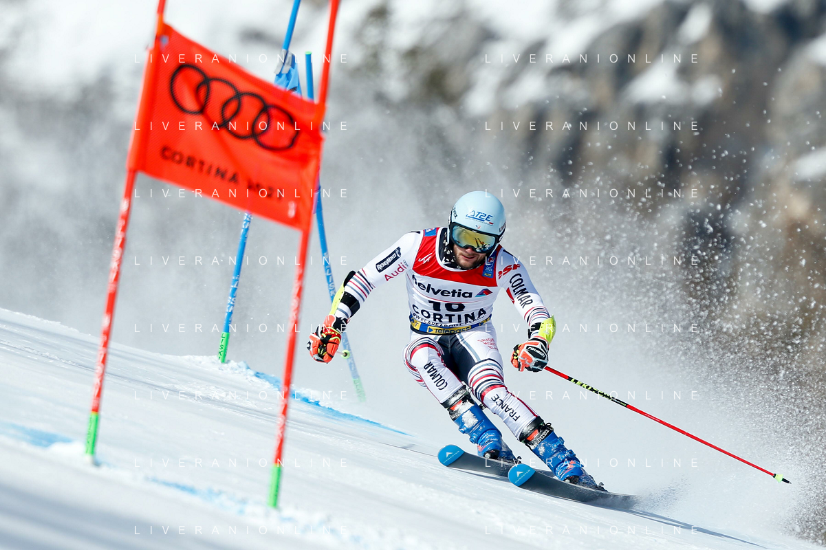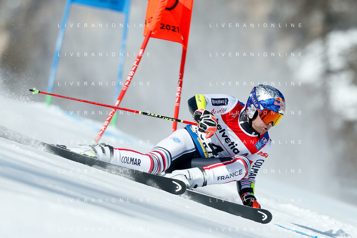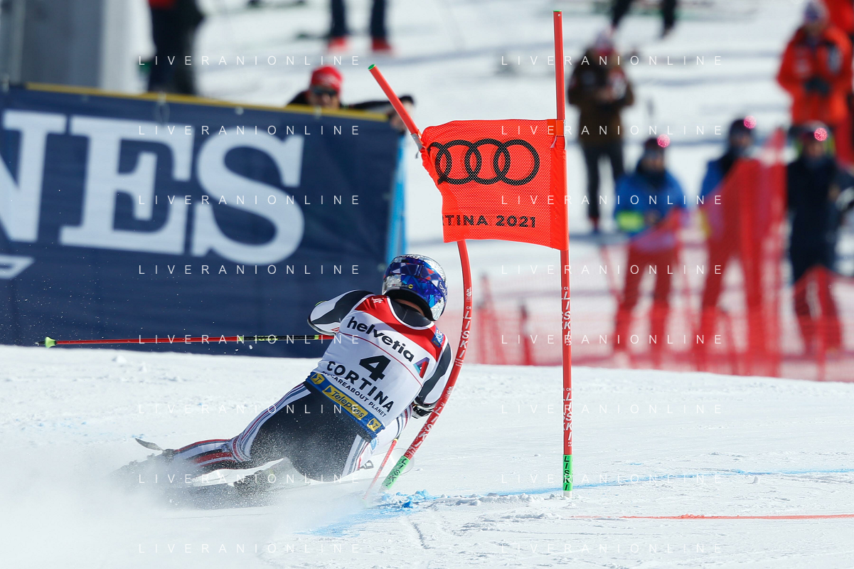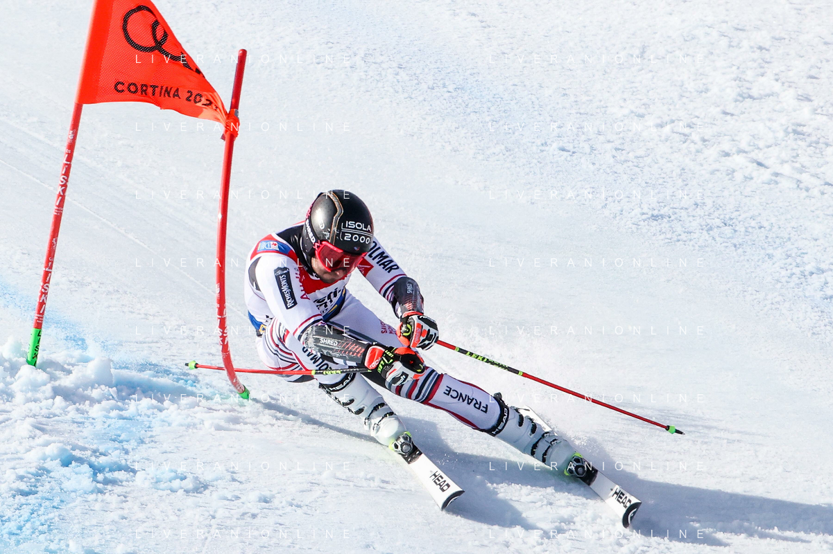 Francesco Scaccianoce/LM - 2021 FIS Alpine World SKI Championships - Giant Slalom - Men - alpine ski race 19 February 2021 - Labirinti, cortina (bl), Italy Photo showing: Thibaut Favrot (FRA) in action in the first run @LM/Francesco Scaccianoce AG ALDO LIVERANI SAS