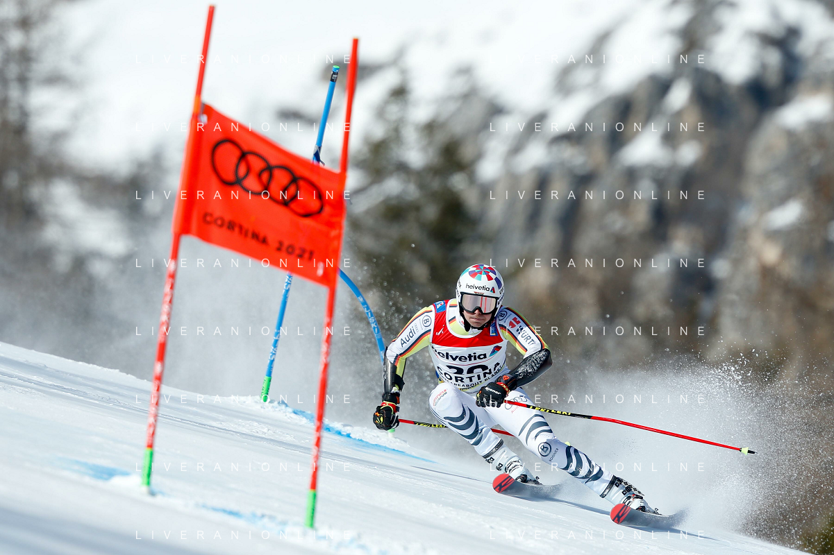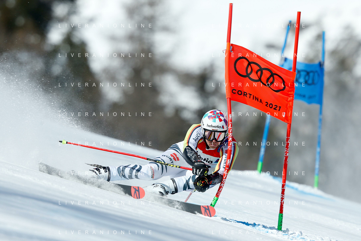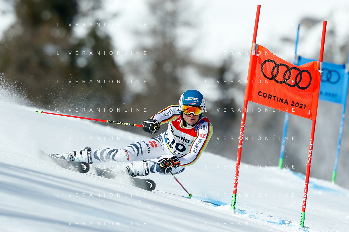 Francesco Scaccianoce/LM - 2021 FIS Alpine World SKI Championships - Giant Slalom - Men - alpine ski race 19 February 2021 - Labirinti, cortina (bl), Italy Photo showing: Stefan Luiz (GER) in action during the first run @LM/Francesco Scaccianoce AG ALDO LIVERANI SAS