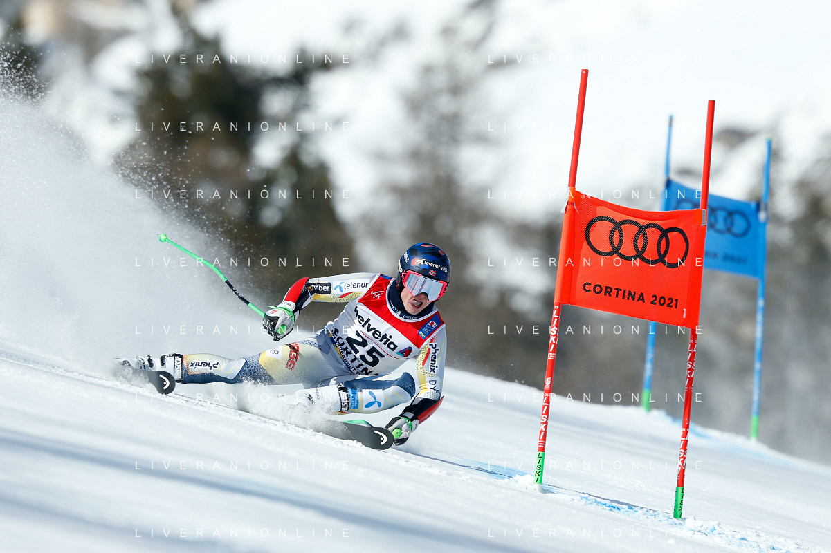 Francesco Scaccianoce/LM - 2021 FIS Alpine World SKI Championships - Giant Slalom - Men - alpine ski race 19 February 2021 - Labirinti, cortina (bl), Italy Photo showing: Leif Kristian Nestvold-Haugen (NOR) holds the 24th position after the first run @LM/Francesco Scaccianoce AG ALDO LIVERANI SAS
