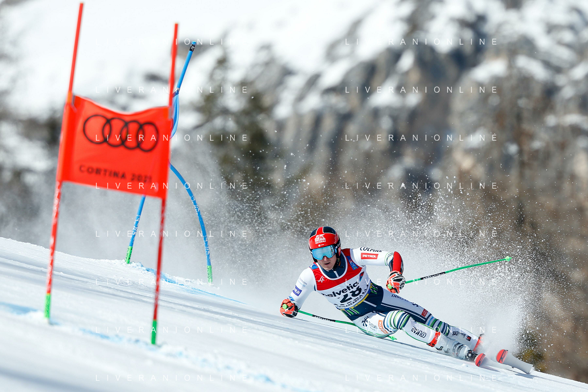 Francesco Scaccianoce/LM - 2021 FIS Alpine World SKI Championships - Giant Slalom - Men - alpine ski race 19 February 2021 - Labirinti, cortina (bl), Italy Photo showing: Justin Murisier (SUI) is out of the race after leaving the track in the first run @LM/Francesco Scaccianoce AG ALDO LIVERANI SAS