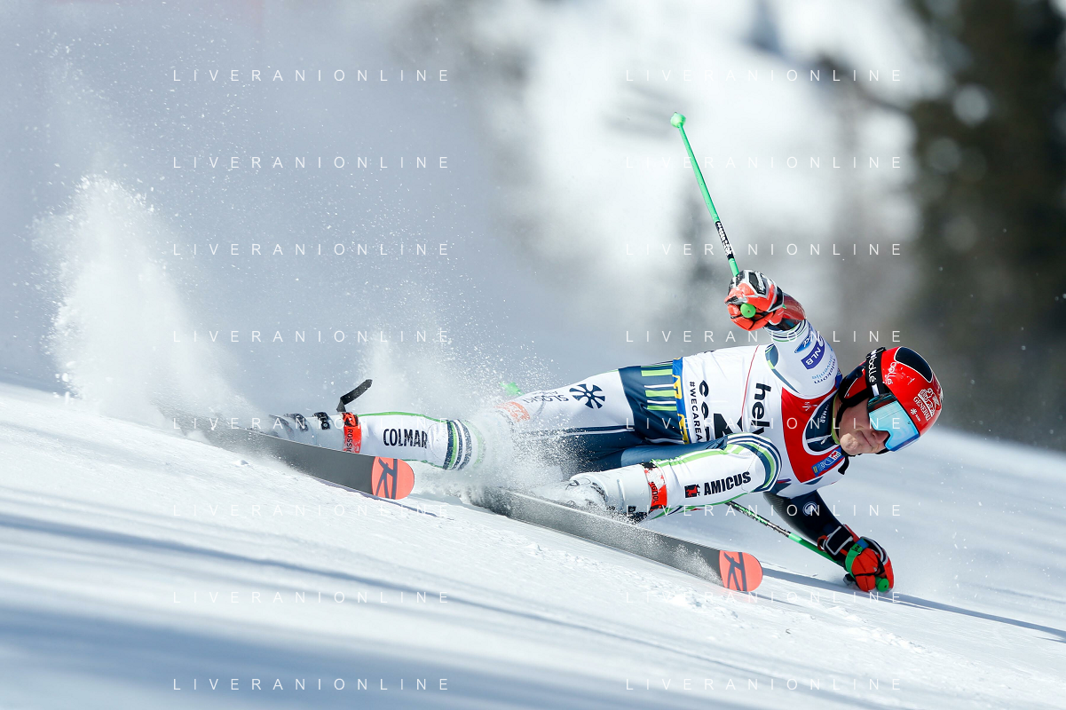 Francesco Scaccianoce/LM - 2021 FIS Alpine World SKI Championships - Giant Slalom - Men - alpine ski race 19 February 2021 - Labirinti, cortina (bl), Italy Photo showing: Luca De Aliprandini (ITA) holds 2nd position after an amazing first run @LM/Francesco Scaccianoce AG ALDO LIVERANI SAS