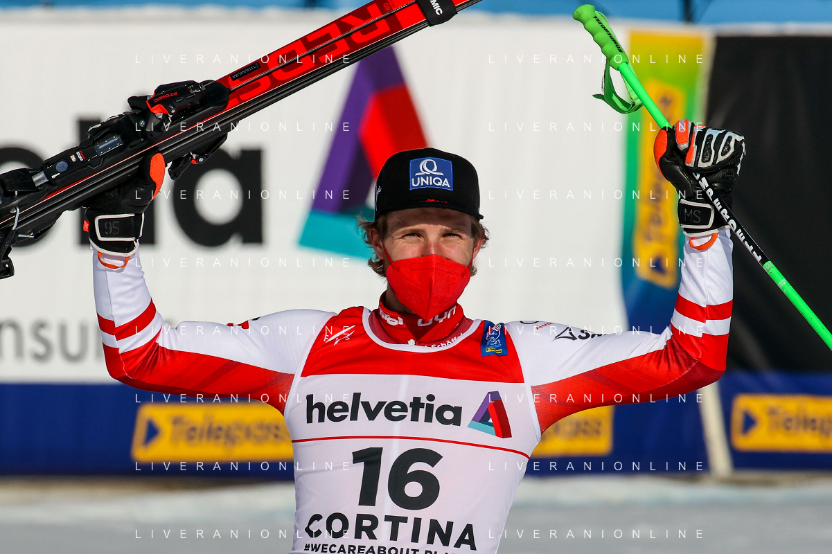 Luca Tedeschi/LM - 2021 FIS Alpine World SKI Championships - Giant Slalom - Men - alpine ski race 19 February 2021 - Labirinti, cortina (bl), Italy Photo showing: Marco SCHWARZ (AUT) third classified of the men's GS in Cortina d'Ampezzo @LM/Luca Tedeschi AG ALDO LIVERANI SAS
