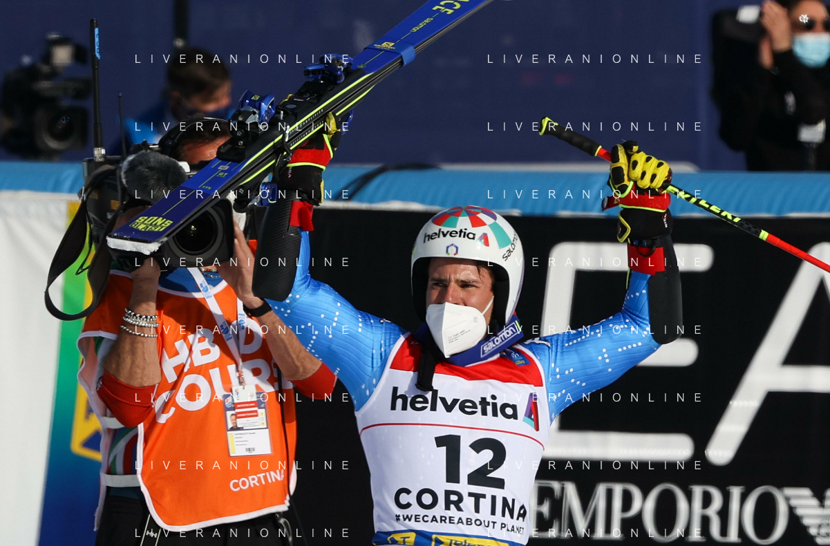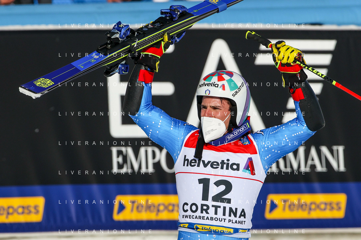 Luca Tedeschi/LM - 2021 FIS Alpine World SKI Championships - Giant Slalom - Men - alpine ski race 19 February 2021 - Labirinti, cortina (bl), Italy Photo showing: Luca de ALIPRANDINI (ITA) unexpected second place in men's GS in Cortina d'Ampezzo @LM/Luca Tedeschi AG ALDO LIVERANI SAS