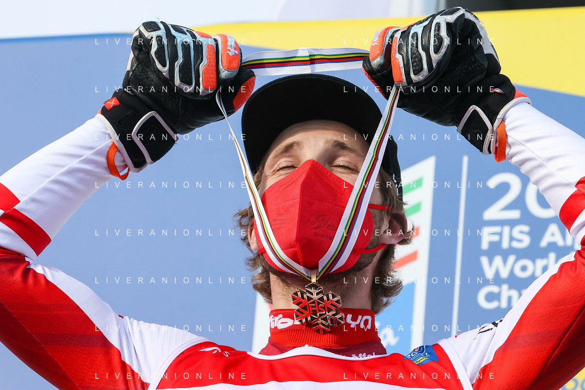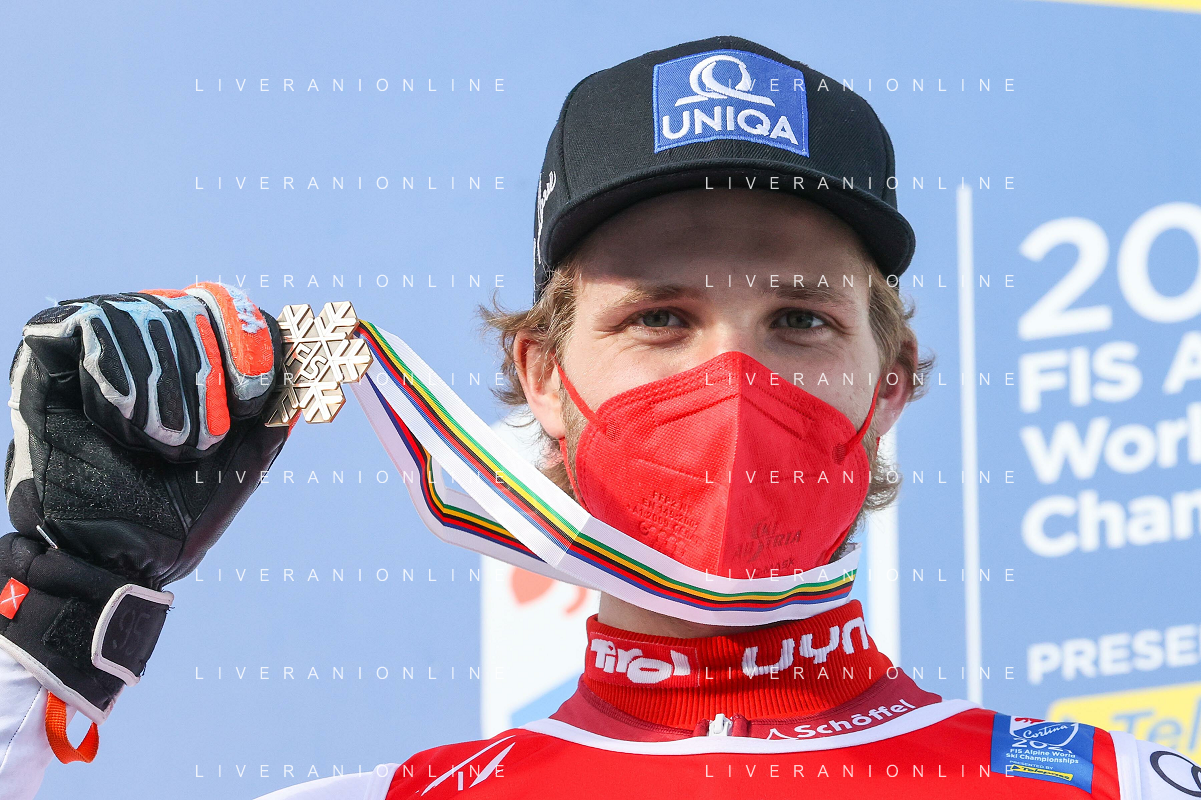 Sergio Bisi/LM - 2021 FIS Alpine World SKI Championships - Giant Slalom - Men - alpine ski race 19 February 2021 - Labirinti, cortina (bl), Italy Photo showing: SCHWARZ Marco (AUT) Bronz Medal @LM/Sergio Bisi AG ALDO LIVERANI SAS