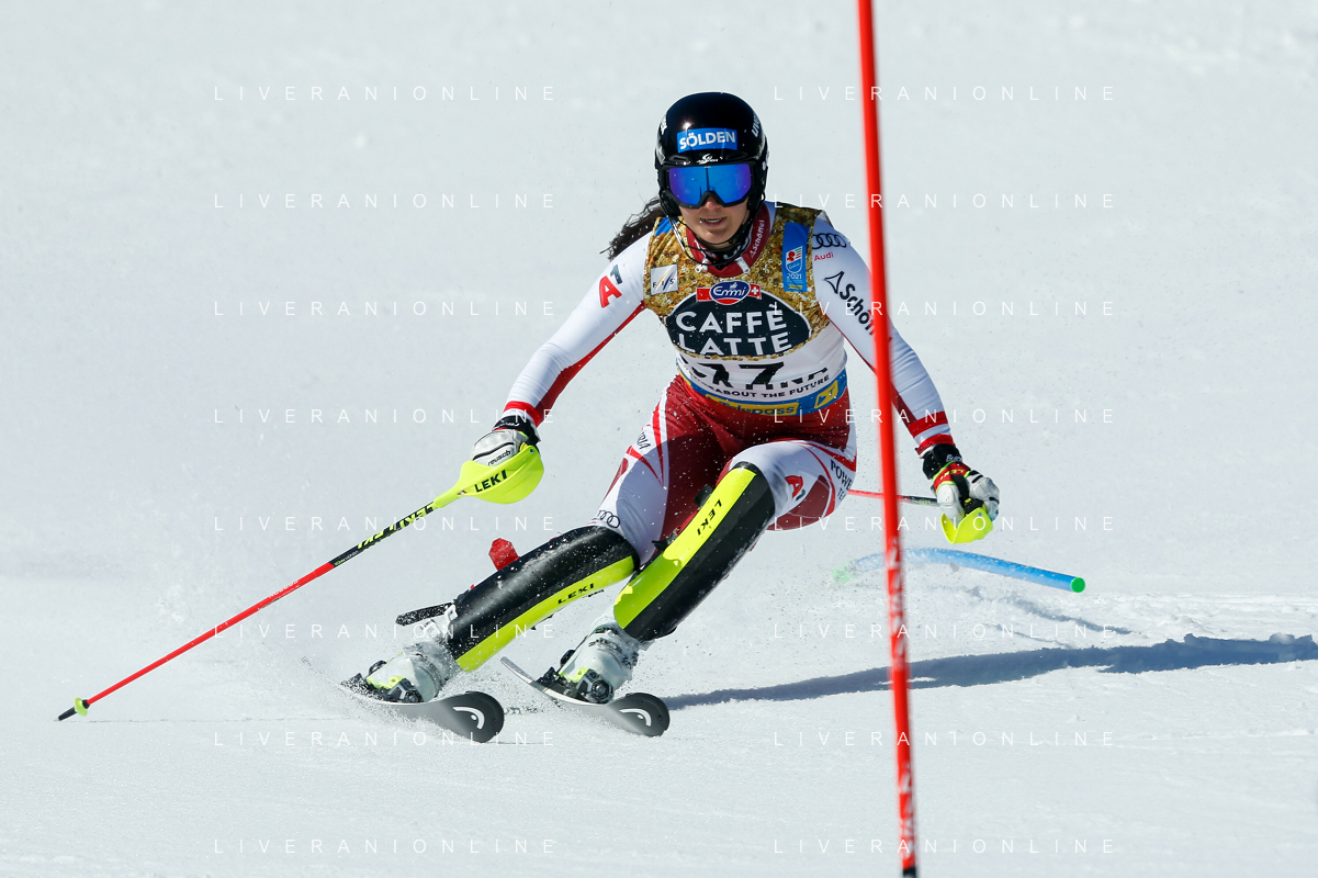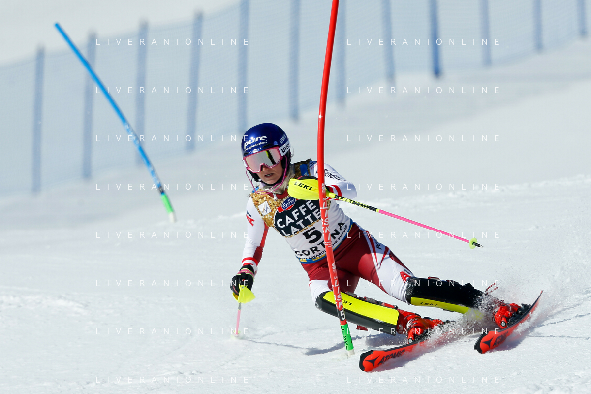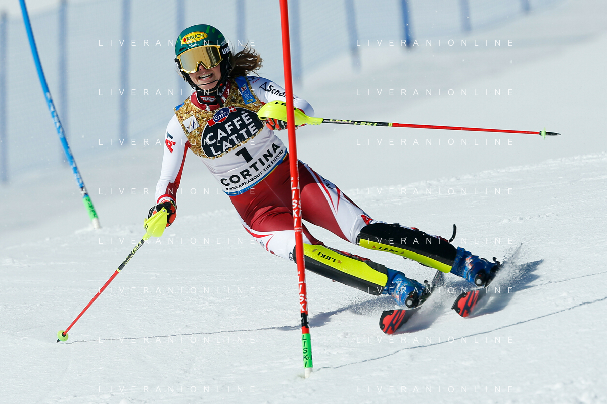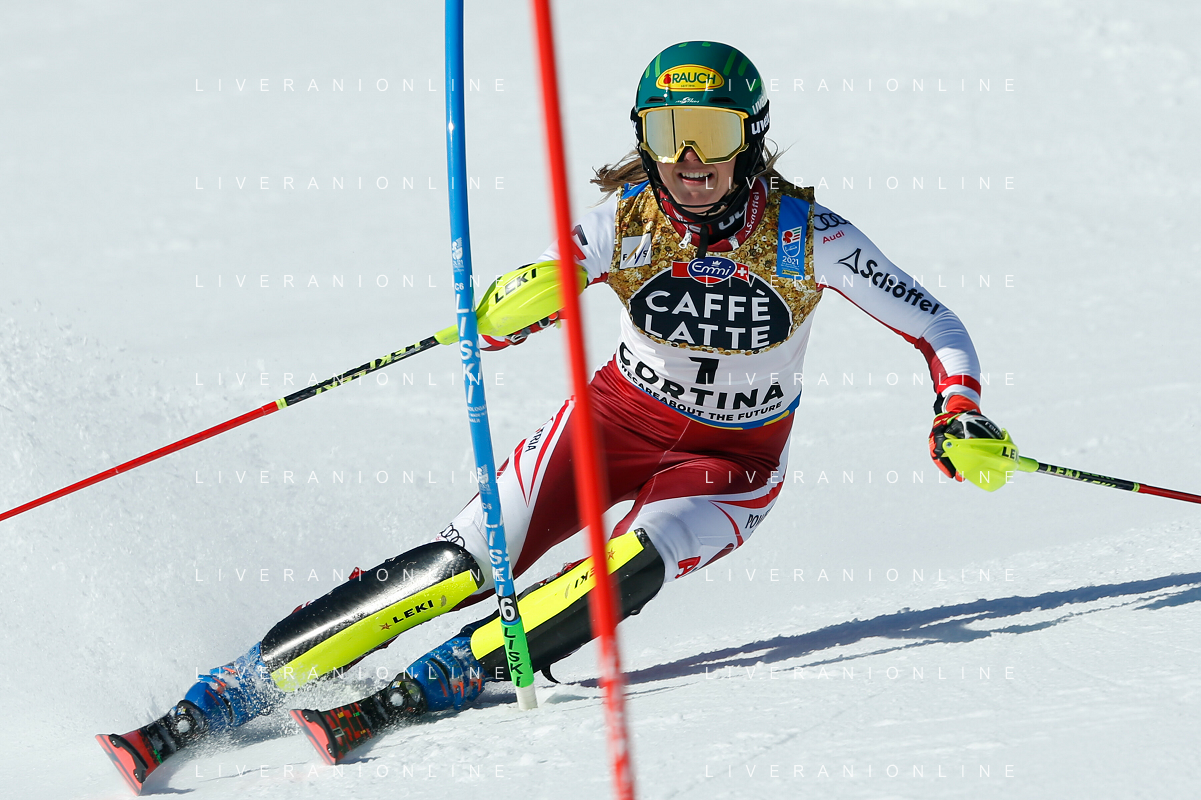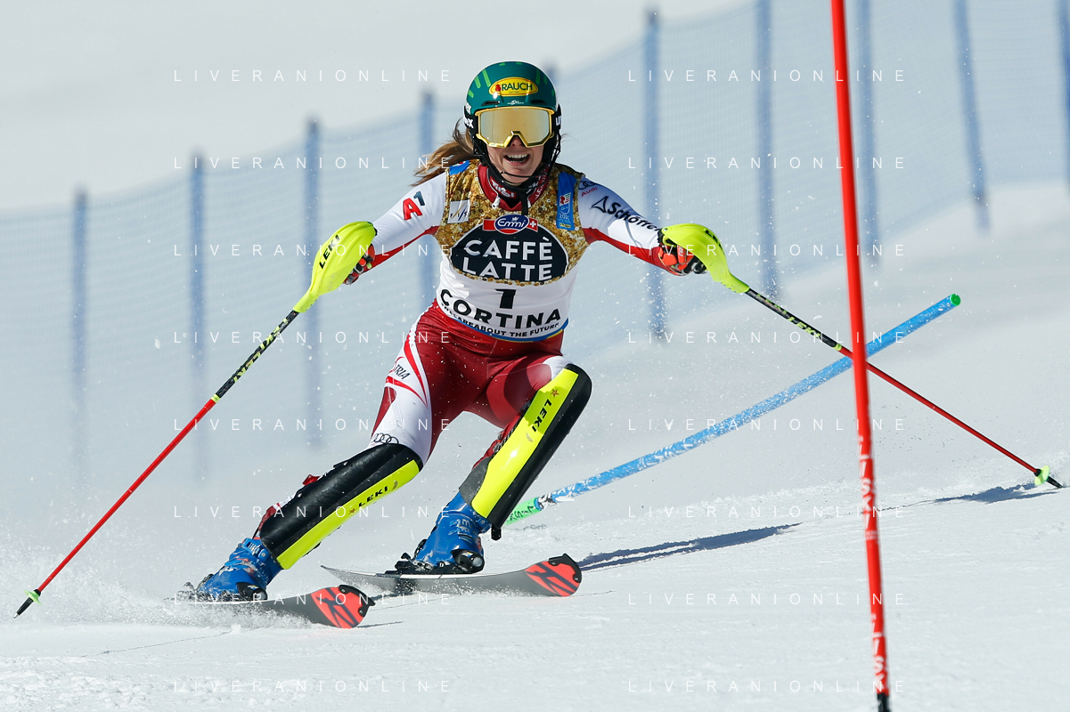 Francesco Scaccianoce/LM - 2021 FIS Alpine World SKI Championships - Slalom - Women - alpine ski race 20 February 2021 - Druscie, cortina (bl), Italy Photo showing: Katharina Liensberger (AUT) is the fastest after the first run @LM/Francesco Scaccianoce AG ALDO LIVERANI SAS
