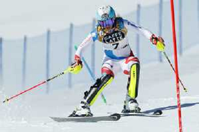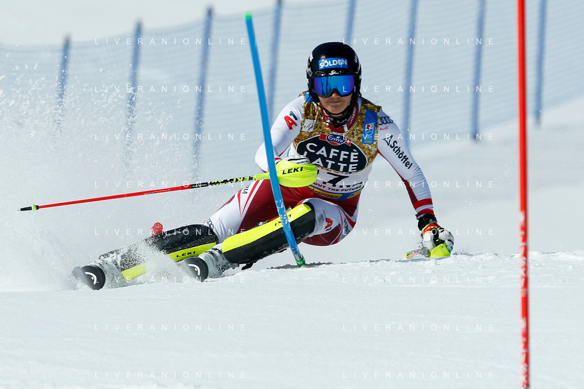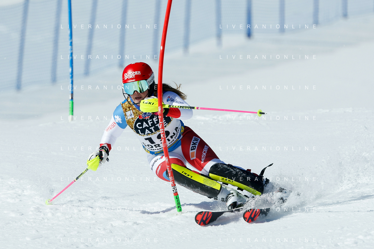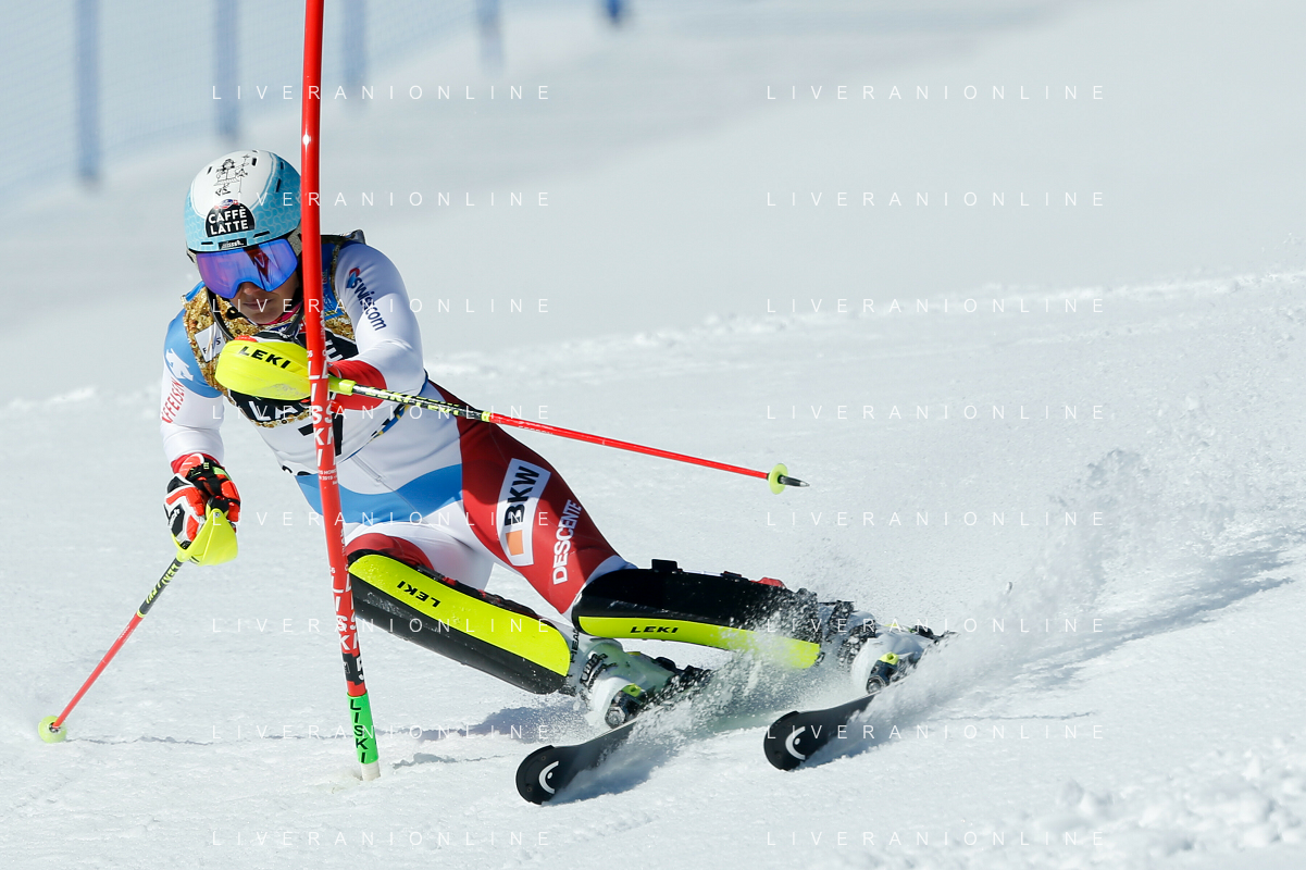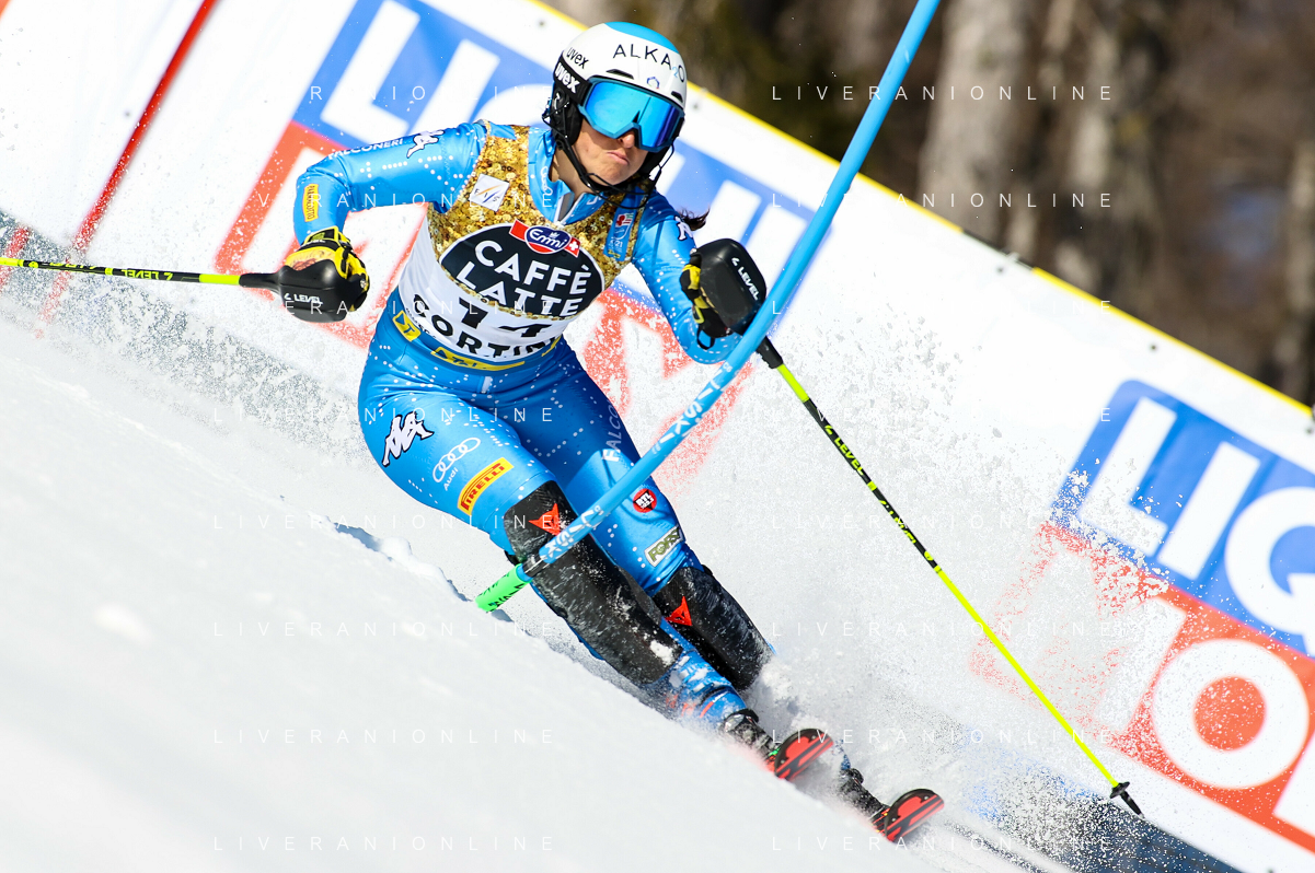 Francesco Scaccianoce/LM - 2021 FIS Alpine World SKI Championships - Slalom - Women - alpine ski race 20 February 2021 - Druscie, cortina (bl), Italy Photo showing: Katharina Liensberger (AUT) is the fastest after the first run @LM/Francesco Scaccianoce AG ALDO LIVERANI SAS