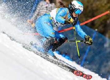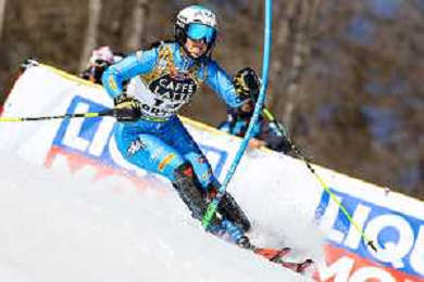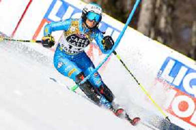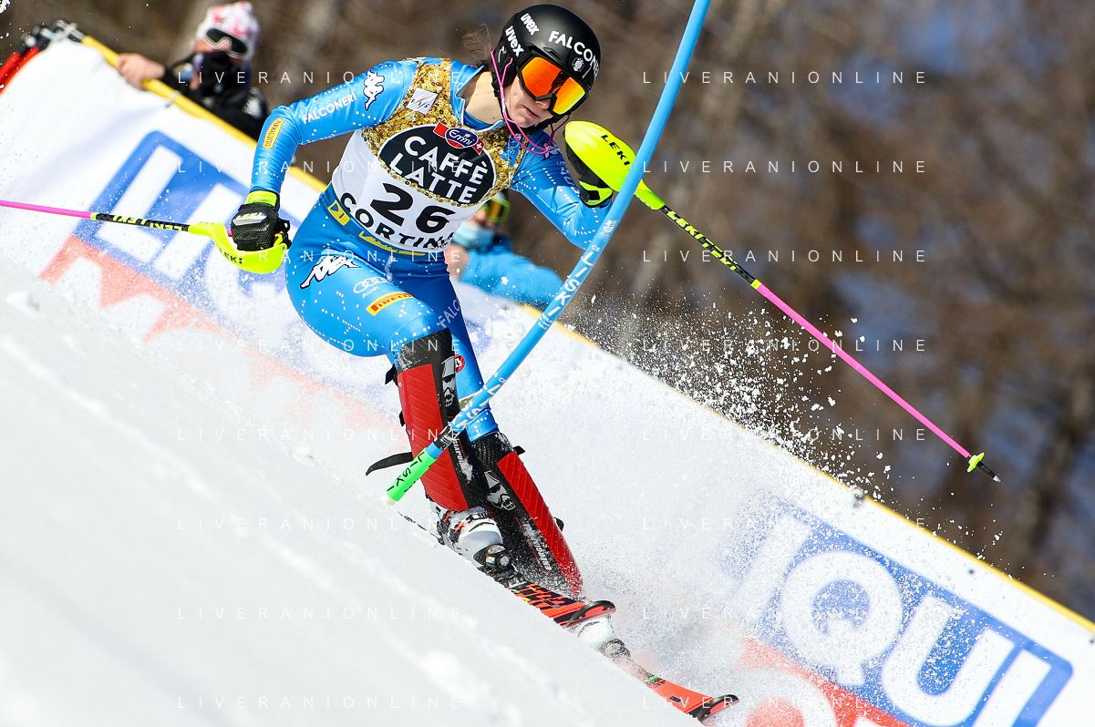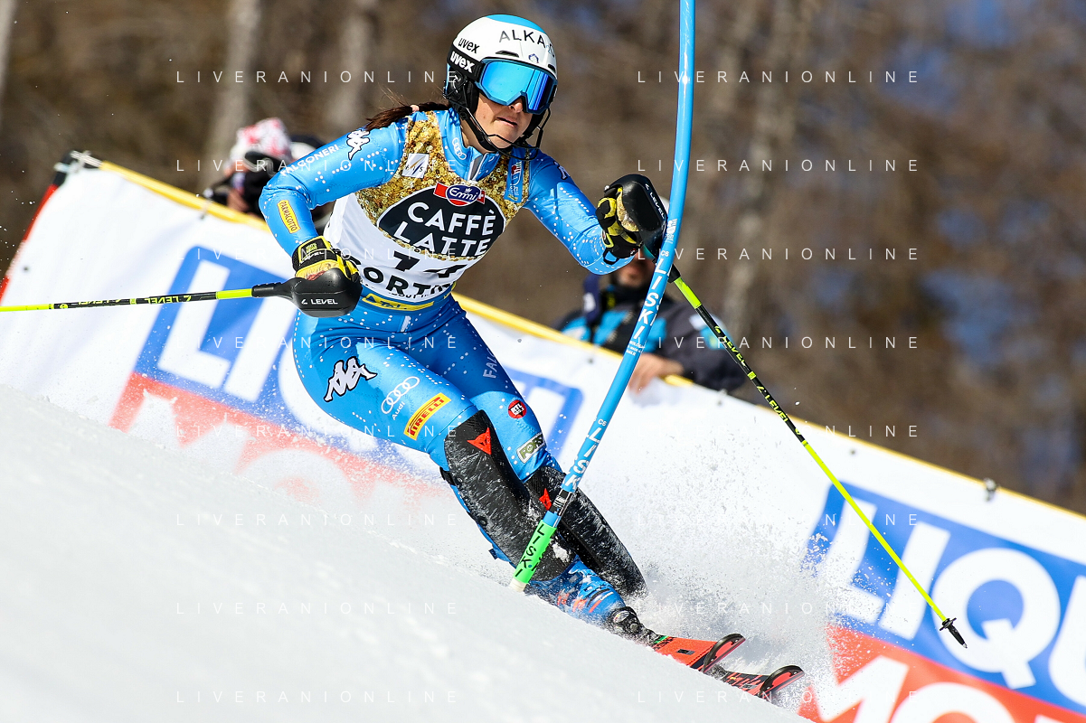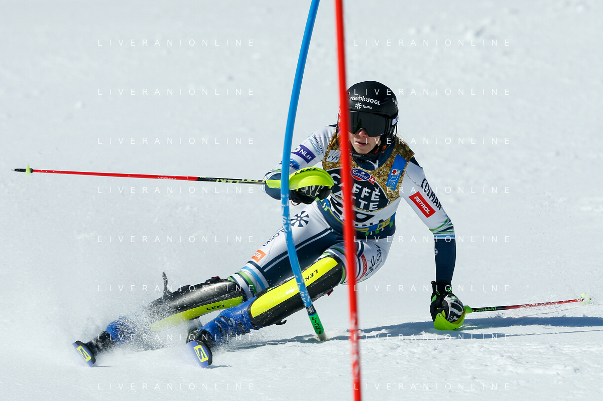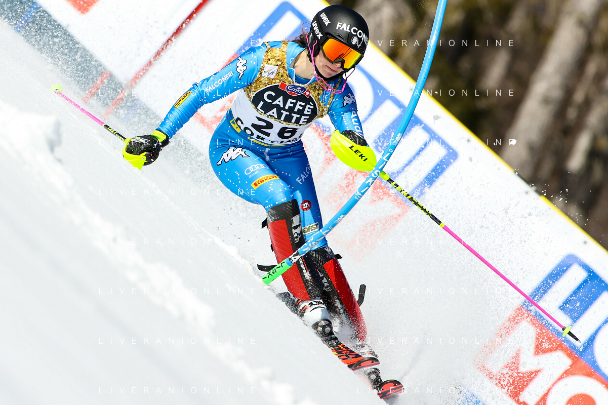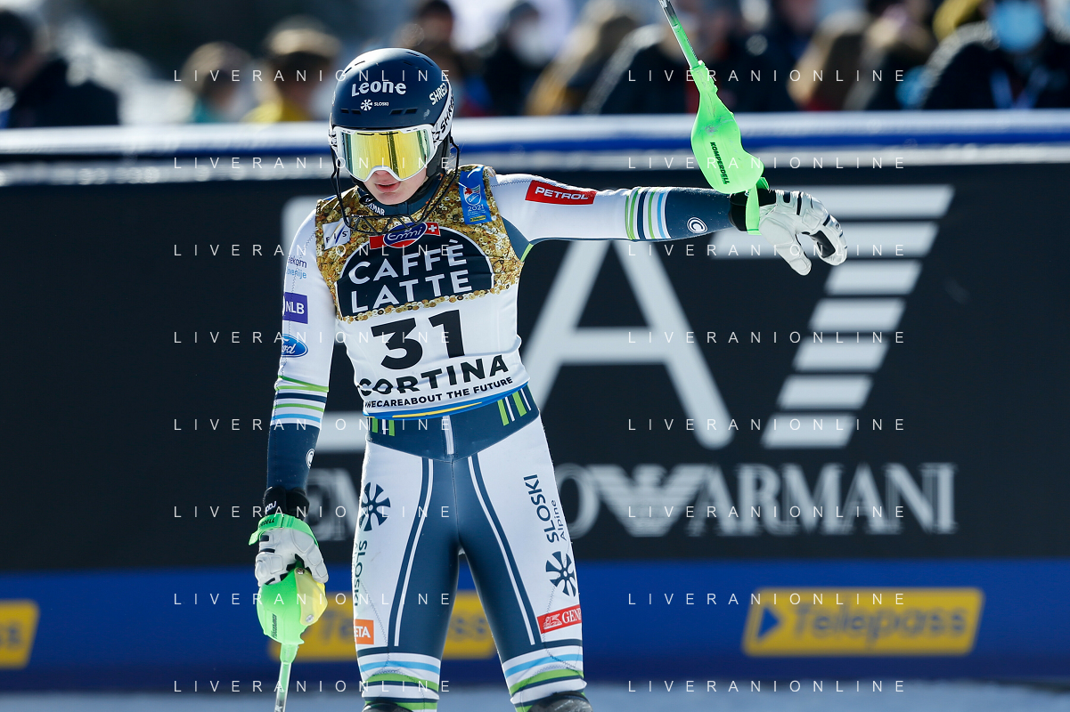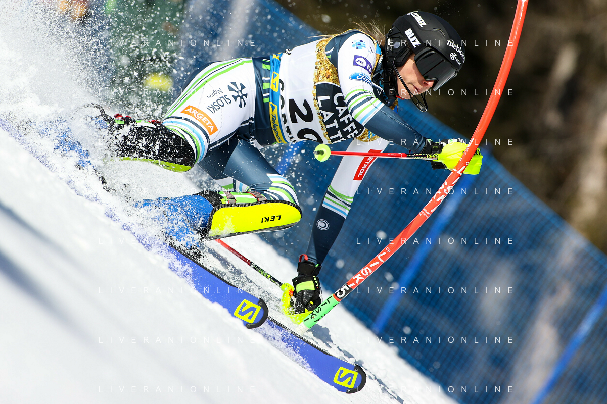 Francesco Scaccianoce/LM - 2021 FIS Alpine World SKI Championships - Slalom - Women - alpine ski race 20 February 2021 - Druscie, cortina (bl), Italy Photo showing: Ana Bucik (SLO) in action. She holds 5th position after the first run @LM/Francesco Scaccianoce AG ALDO LIVERANI SAS