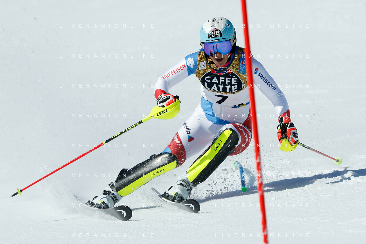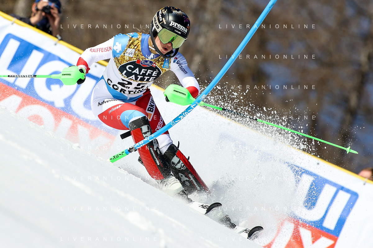 Francesco Scaccianoce/LM - 2021 FIS Alpine World SKI Championships - Slalom - Women - alpine ski race 20 February 2021 - Druscie, cortina (bl), Italy Photo showing: Wendy Holdener (SUI) in action. She is the third fastest after the first run @LM/Francesco Scaccianoce AG ALDO LIVERANI SAS
