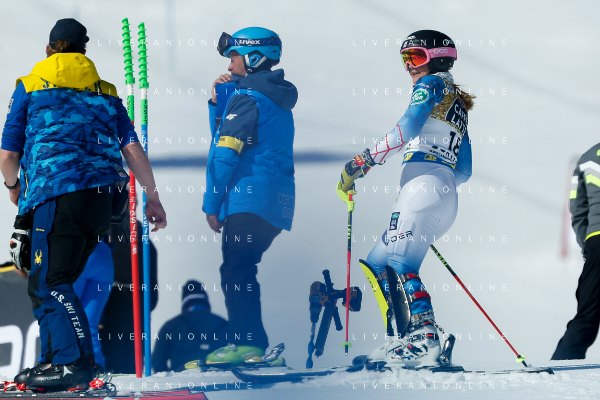 Francesco Scaccianoce/LM - 2021 FIS Alpine World SKI Championships - Slalom - Women - alpine ski race 20 February 2021 - Druscie, cortina (bl), Italy Photo showing: Paula Moltzan (USA) is out of the race @LM/Francesco Scaccianoce AG ALDO LIVERANI SAS