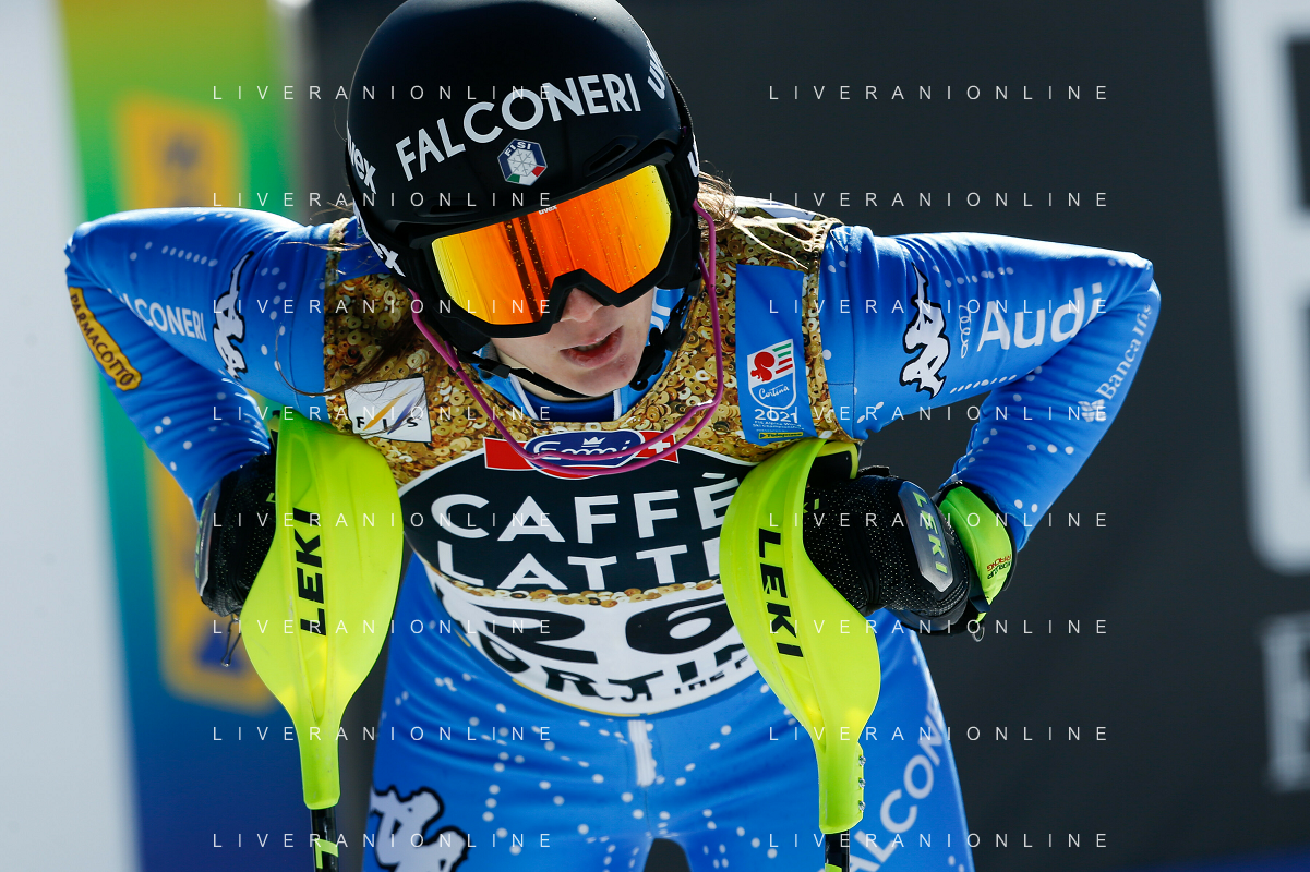 Francesco Scaccianoce/LM - 2021 FIS Alpine World SKI Championships - Slalom - Women - alpine ski race 20 February 2021 - Druscie, cortina (bl), Italy Photo showing: Martina Peterlini (ITA) after the finish line @LM/Francesco Scaccianoce AG ALDO LIVERANI SAS