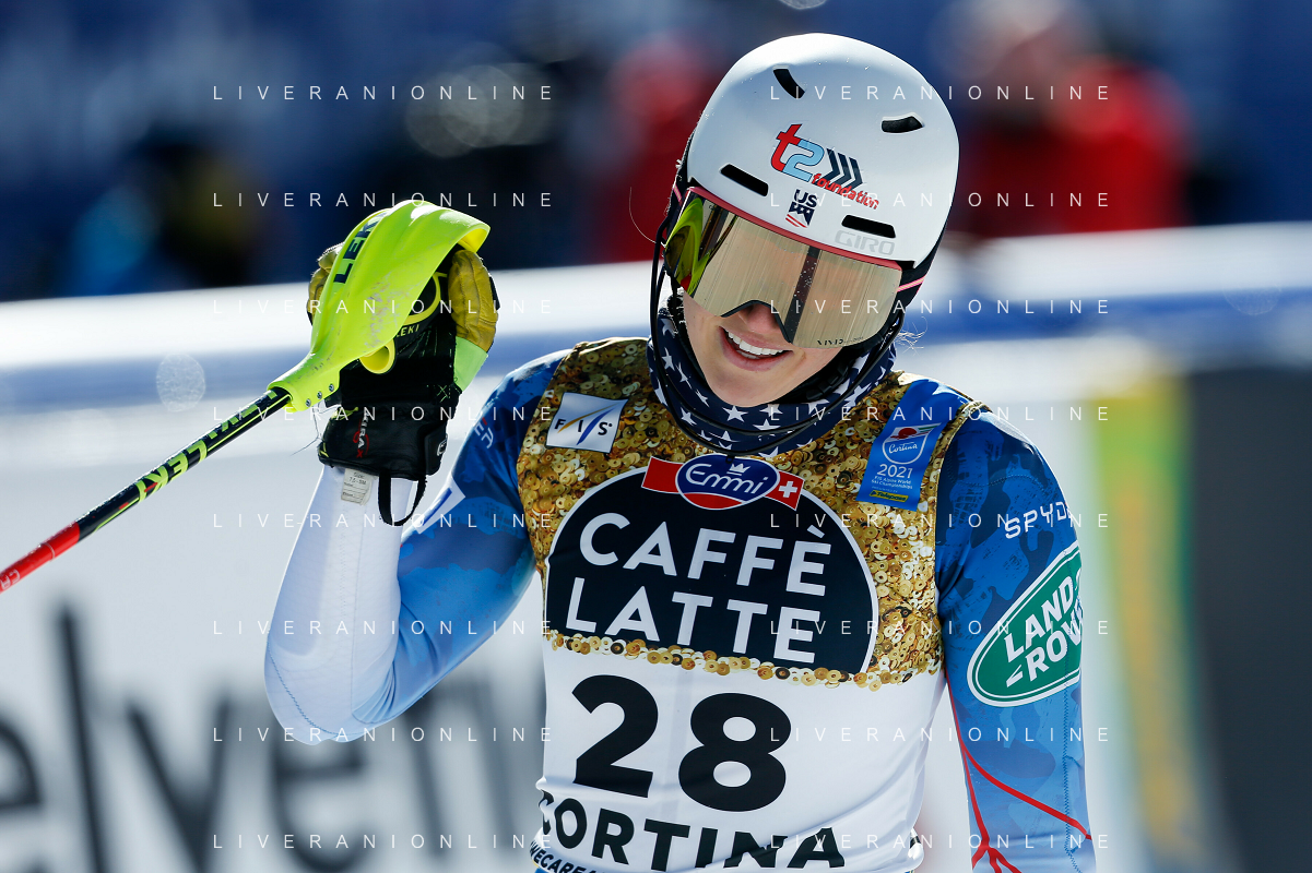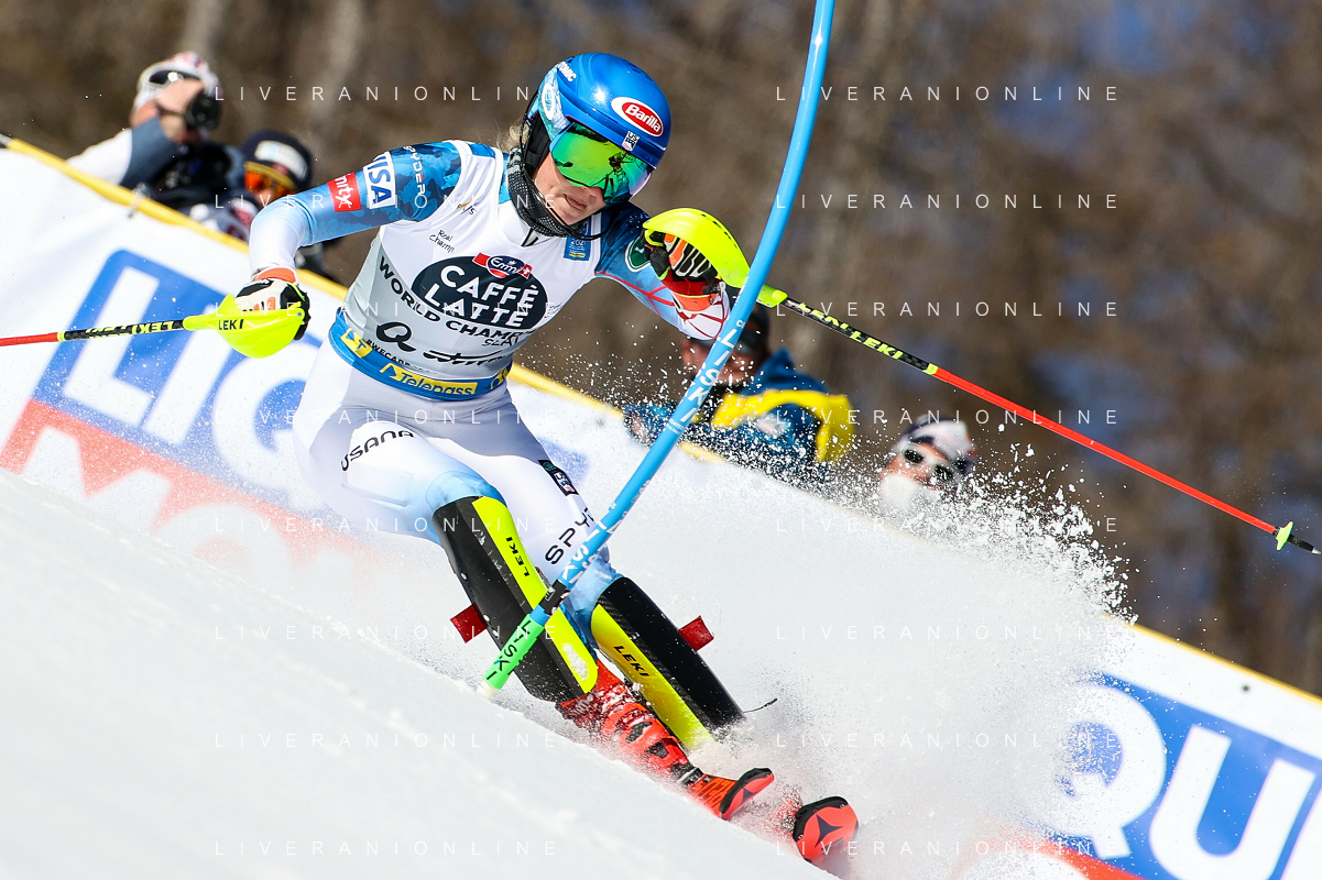 Francesco Scaccianoce/LM - 2021 FIS Alpine World SKI Championships - Slalom - Women - alpine ski race 20 February 2021 - Druscie, cortina (bl), Italy Photo showing: Mikaela Shiffrin (USA) in action. She is the 4th fastest after the first run @LM/Francesco Scaccianoce AG ALDO LIVERANI SAS