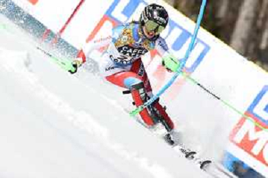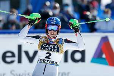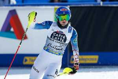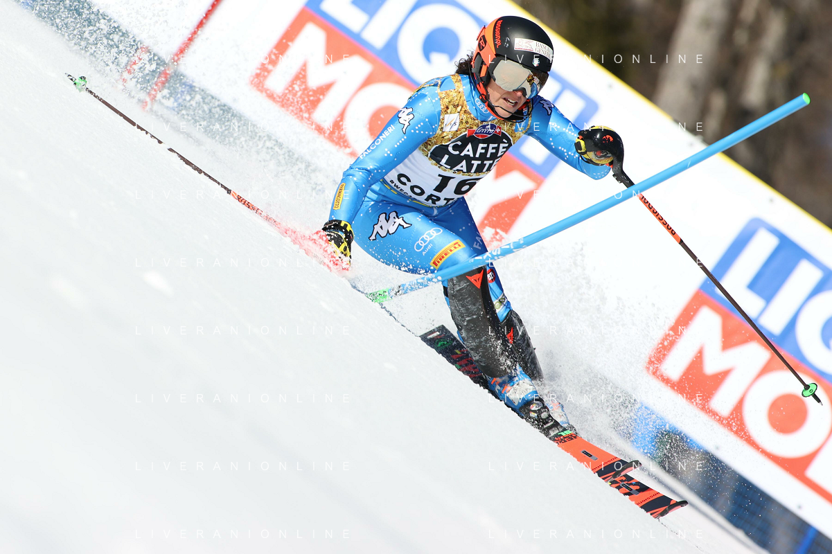 Luca Tedeschi/LM - 2021 FIS Alpine World SKI Championships - Slalom - Women - alpine ski race 20 February 2021 - Druscie, cortina (bl), Italy Photo showing: Slovakian Petra Vlhov skies during the first manche @LM/Luca Tedeschi AG ALDO LIVERANI SAS
