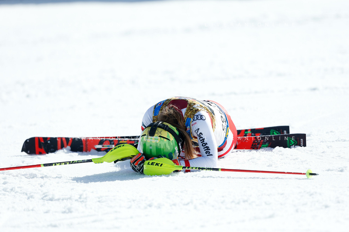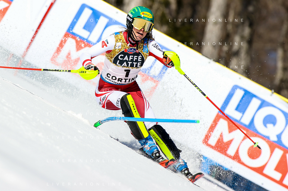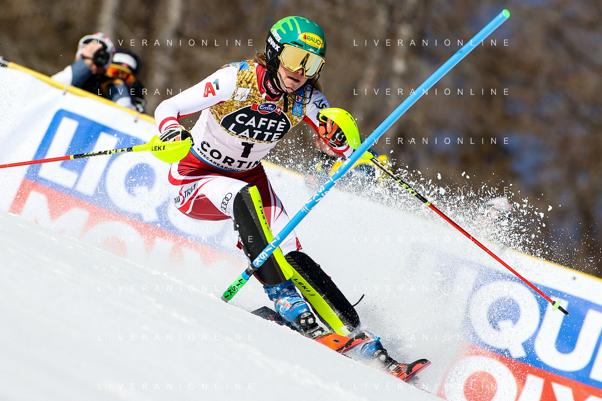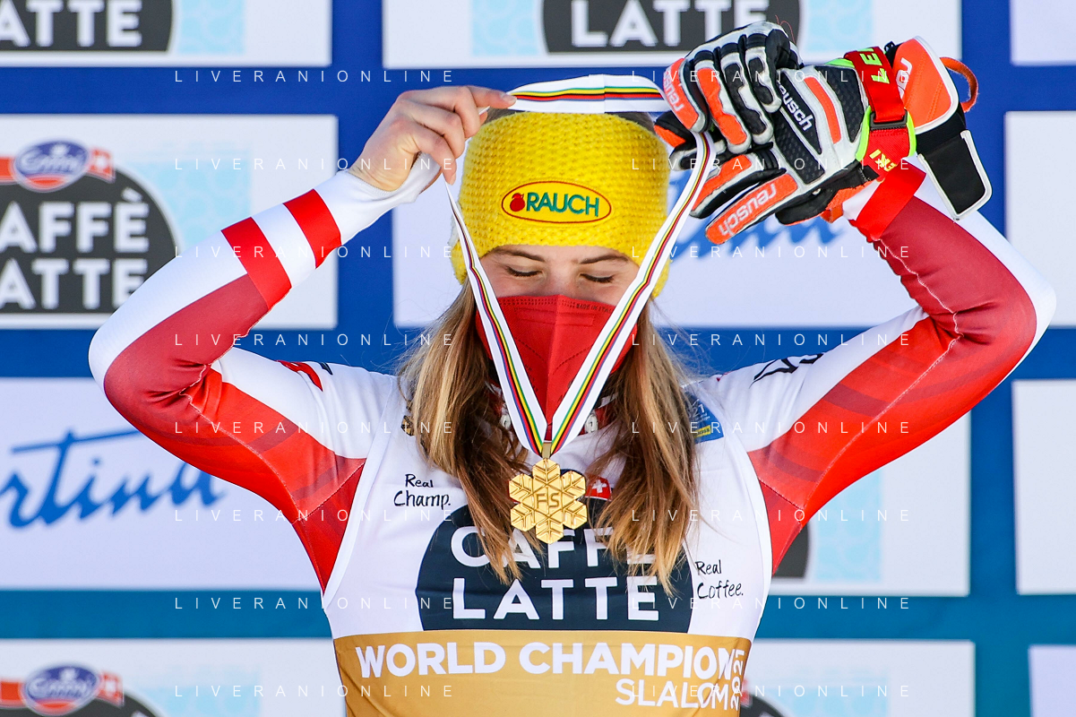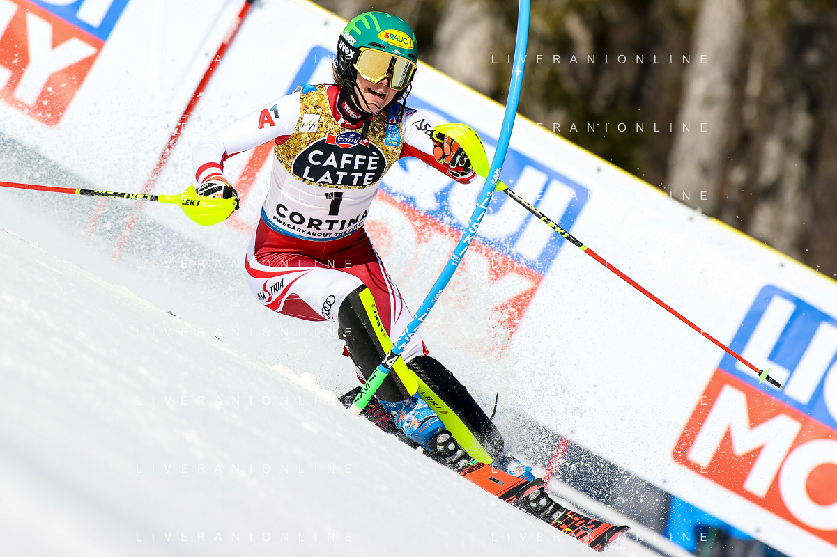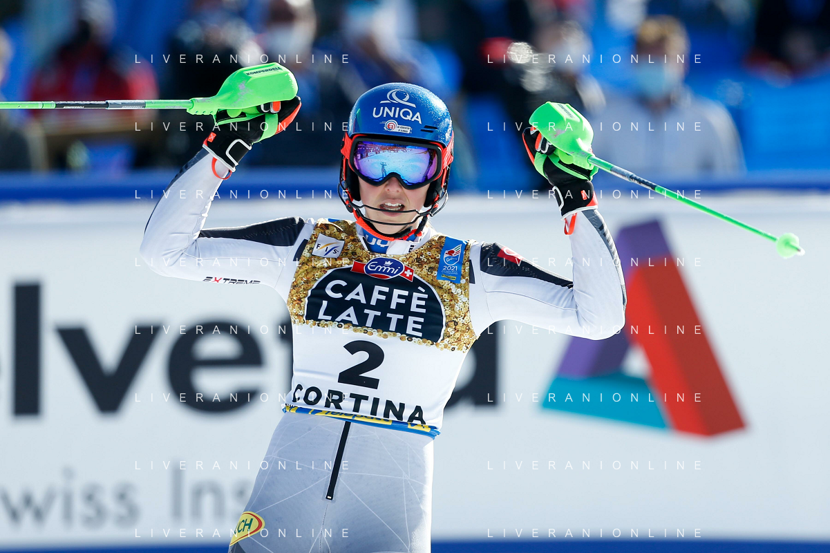 Francesco Scaccianoce/LM - 2021 FIS Alpine World SKI Championships - Slalom - Women - alpine ski race 20 February 2021 - Druscie, cortina (bl), Italy Photo showing: Katharina Liensberger (AUT) finishes in 1st position and wins the gold medal in Slalom @LM/Francesco Scaccianoce AG ALDO LIVERANI SAS
