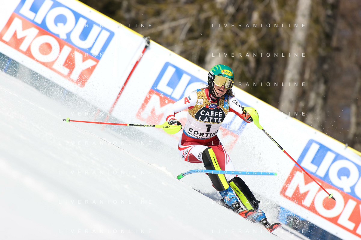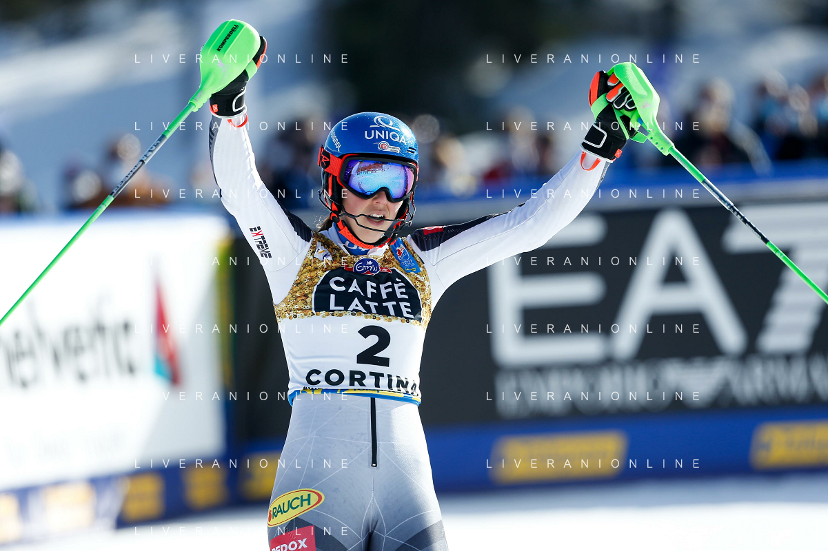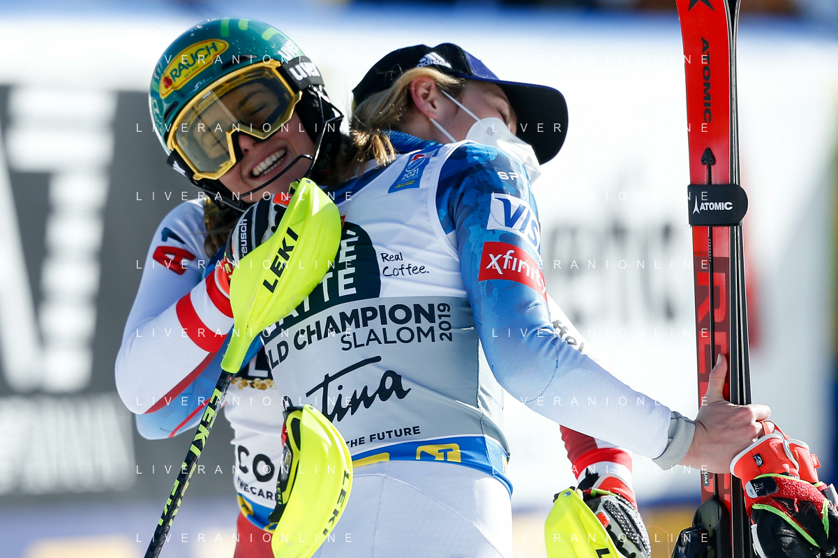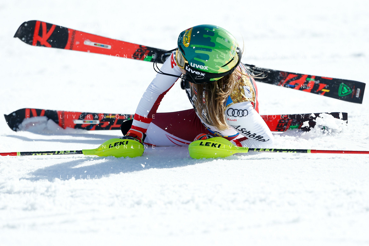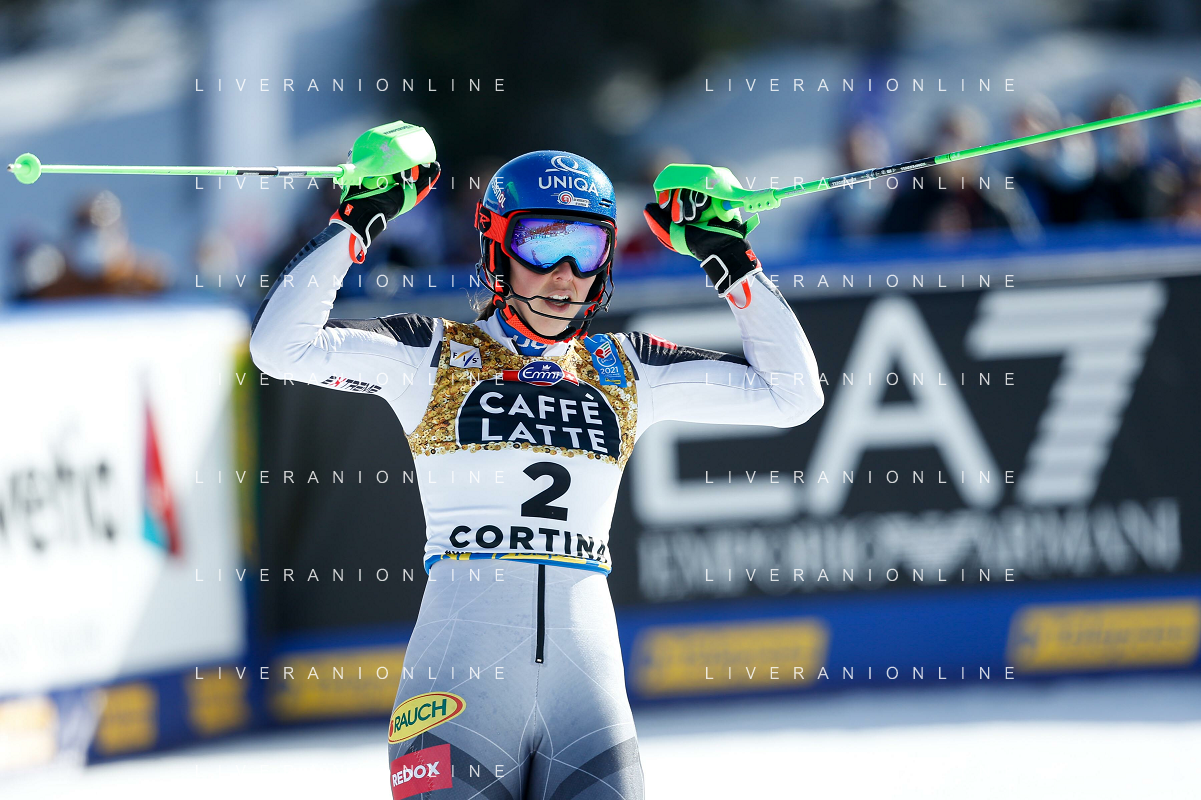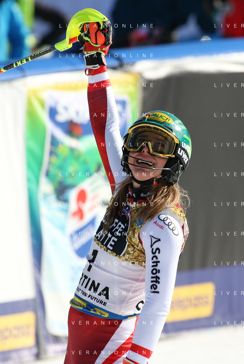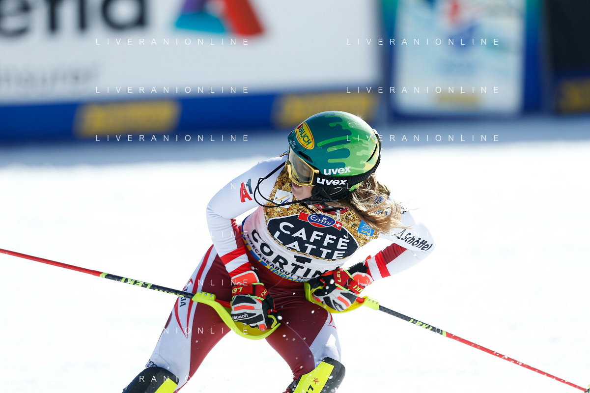 Francesco Scaccianoce/LM - 2021 FIS Alpine World SKI Championships - Slalom - Women - alpine ski race 20 February 2021 - Druscie, cortina (bl), Italy Photo showing: Katharina Liensberger (AUT) finishes in 1st position and wins the gold medal in Slalom @LM/Francesco Scaccianoce AG ALDO LIVERANI SAS