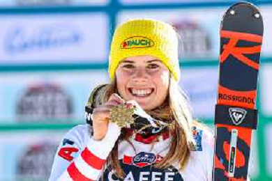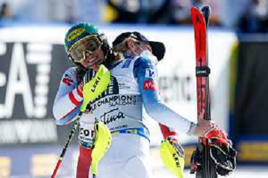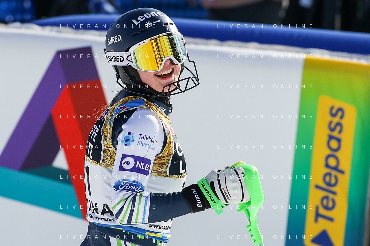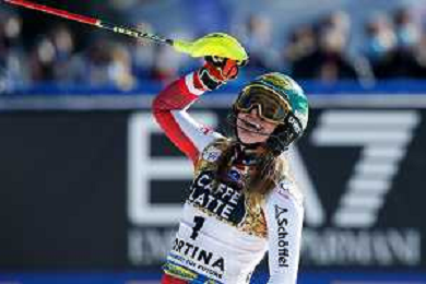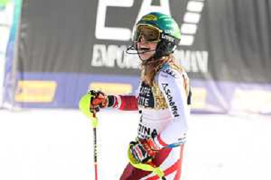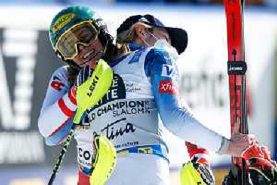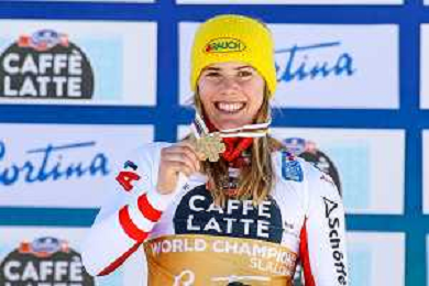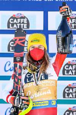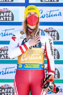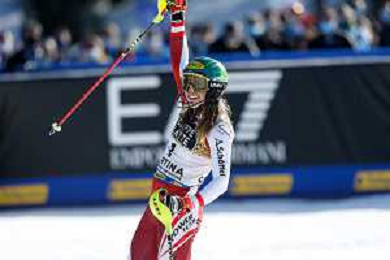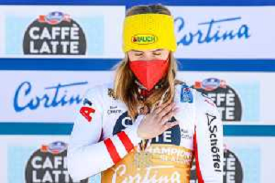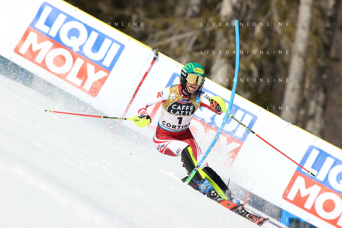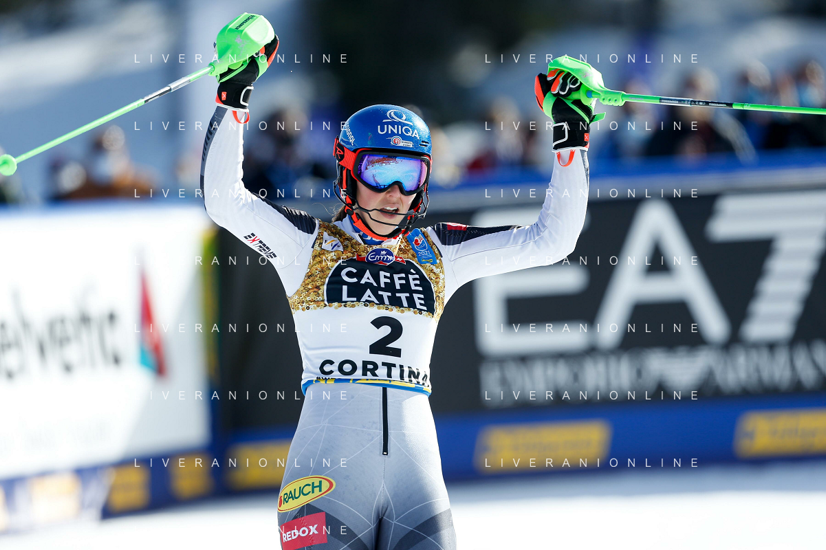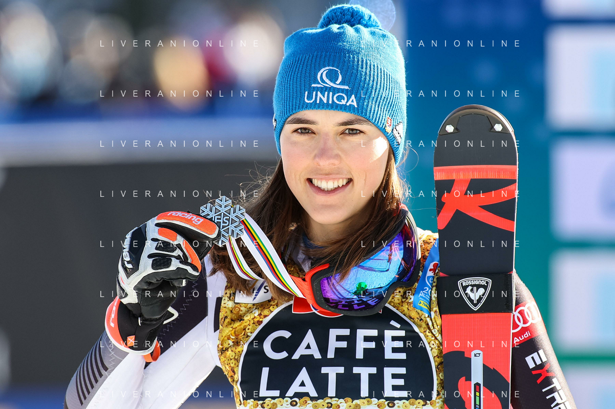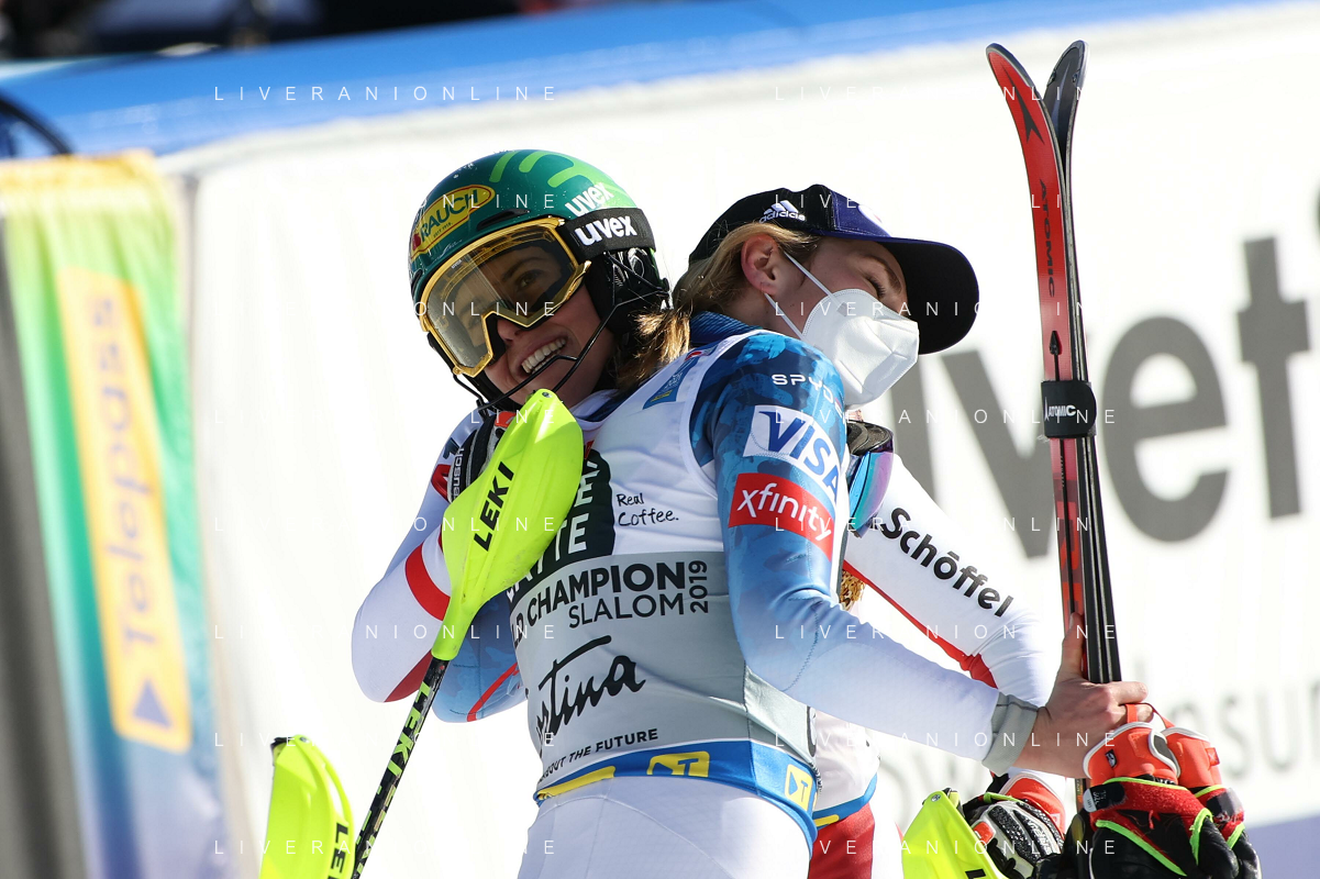 Francesco Scaccianoce/LM - 2021 FIS Alpine World SKI Championships - Slalom - Women - alpine ski race 20 February 2021 - Druscie, cortina (bl), Italy Photo showing: Katharina Liensberger (AUT) finishes in 1st position and wins the gold medal in Slalom @LM/Francesco Scaccianoce AG ALDO LIVERANI SAS