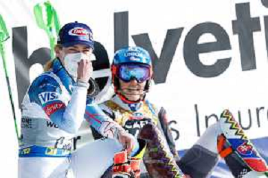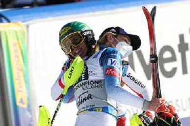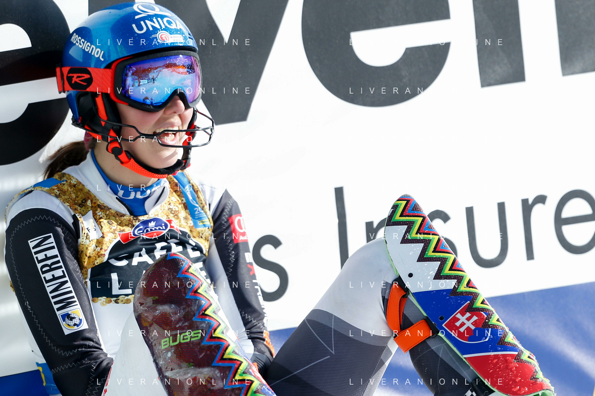 Francesco Scaccianoce/LM - 2021 FIS Alpine World SKI Championships - Slalom - Women - alpine ski race 20 February 2021 - Druscie, cortina (bl), Italy Photo showing: Petra Vlhova (SVK) and Petra Vlhova (SVK) watching the standings @LM/Francesco Scaccianoce AG ALDO LIVERANI SAS
