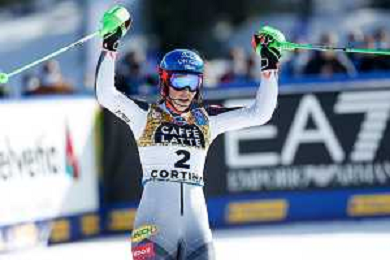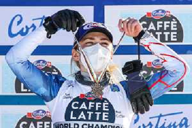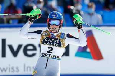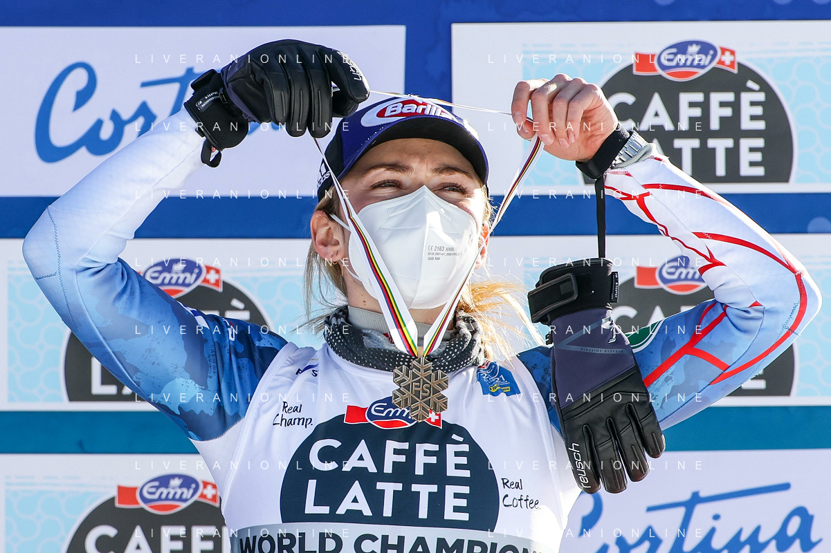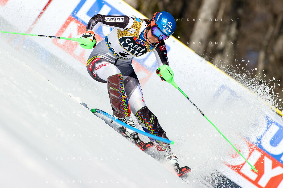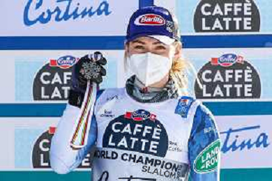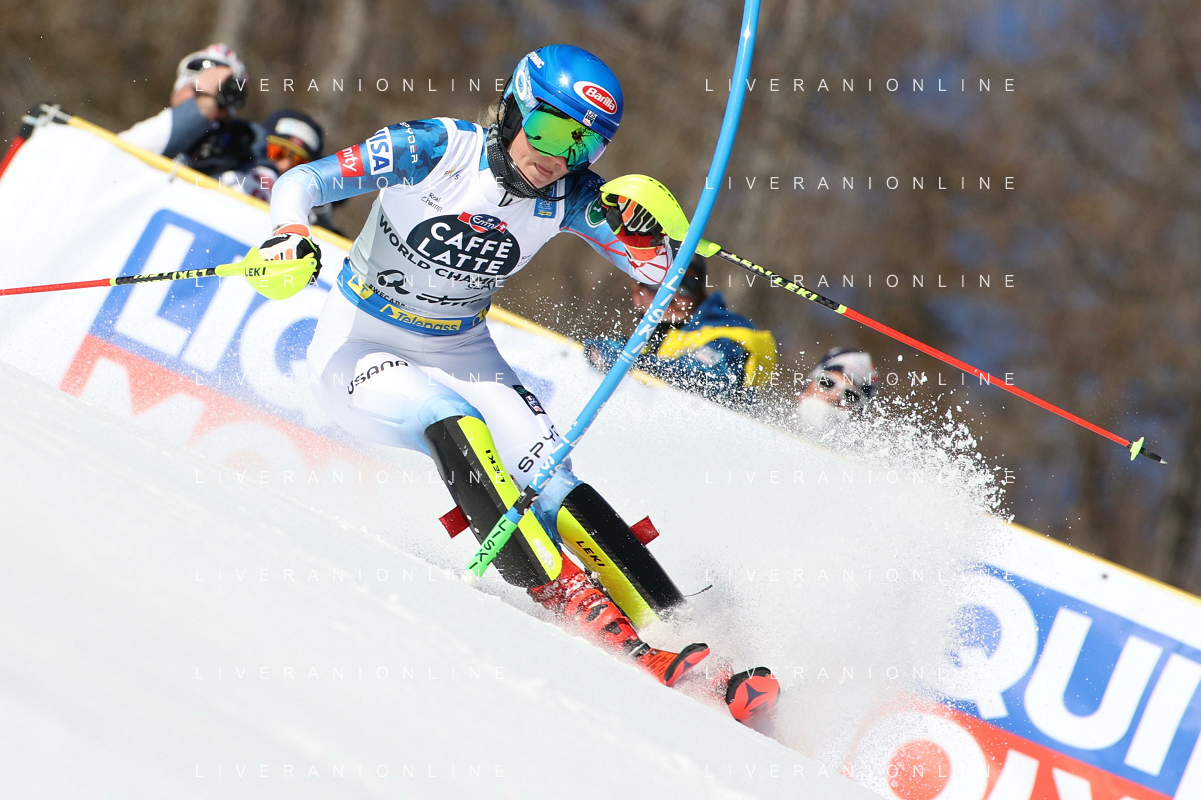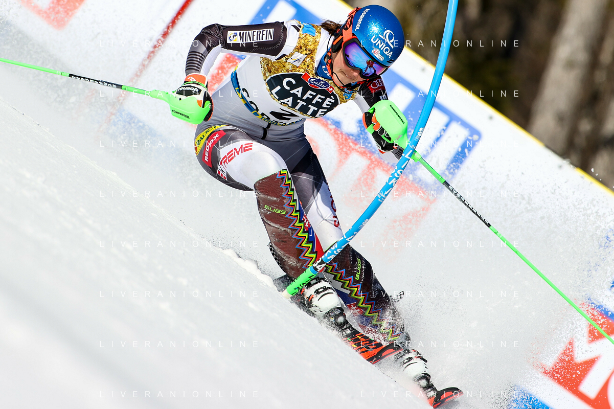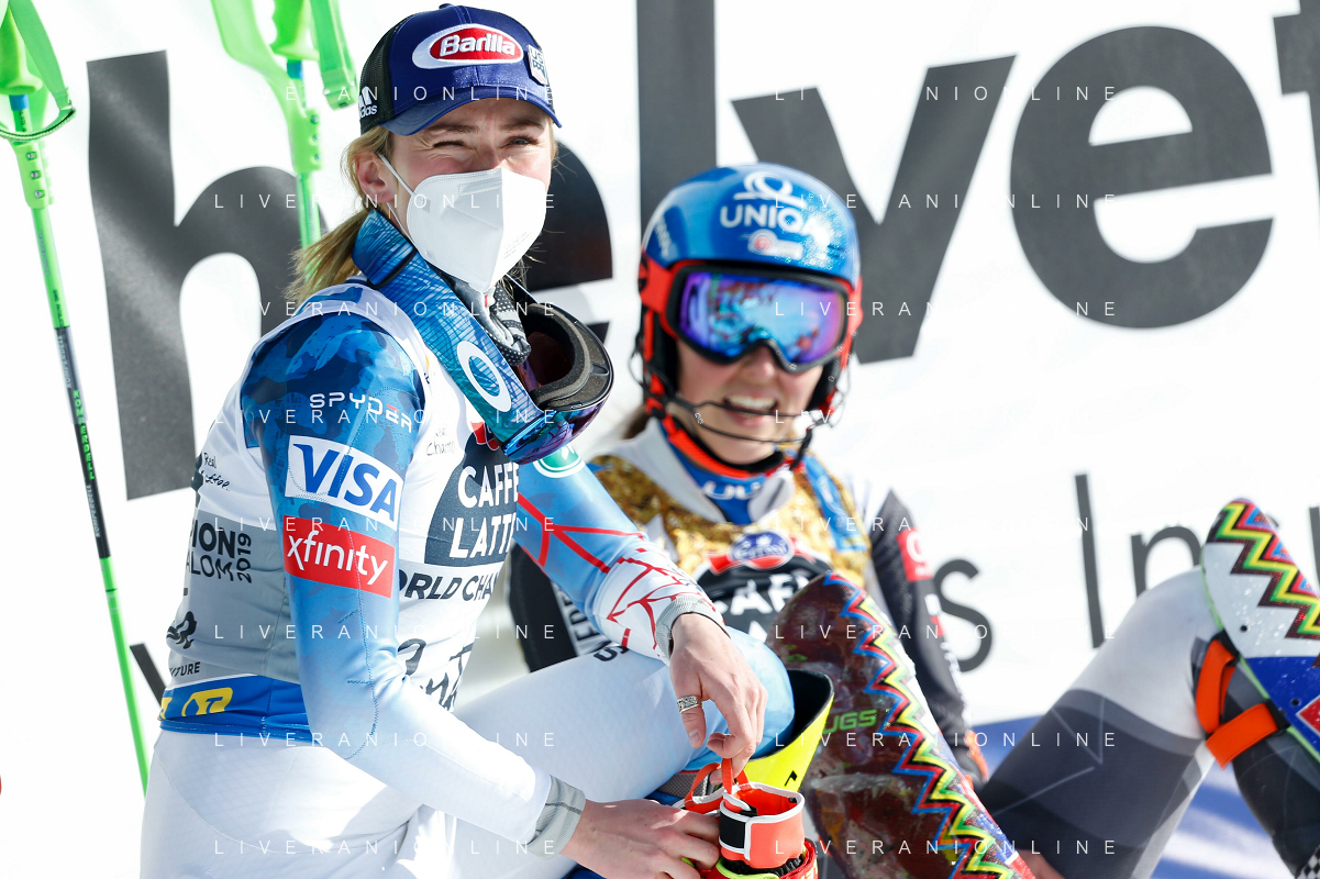 Francesco Scaccianoce/LM - 2021 FIS Alpine World SKI Championships - Slalom - Women - alpine ski race 20 February 2021 - Druscie, cortina (bl), Italy Photo showing: Mikaela Shiffrin (USA) finishes in 3rd position and wins the bronze medal @LM/Francesco Scaccianoce AG ALDO LIVERANI SAS