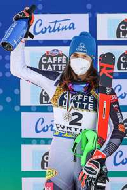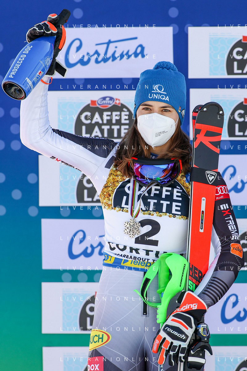 Francesco Scaccianoce/LM - 2021 FIS Alpine World SKI Championships - Slalom - Women - alpine ski race 20 February 2021 - Druscie, cortina (bl), Italy Photo showing: Petra Vlhova (SVK) celebrates after her 2nd position and silver medal @LM/Francesco Scaccianoce AG ALDO LIVERANI SAS