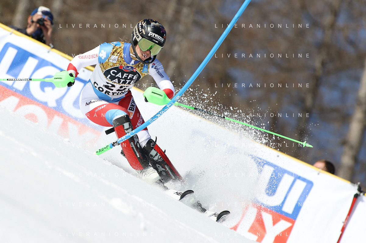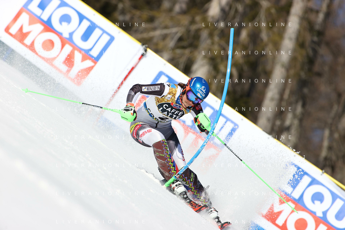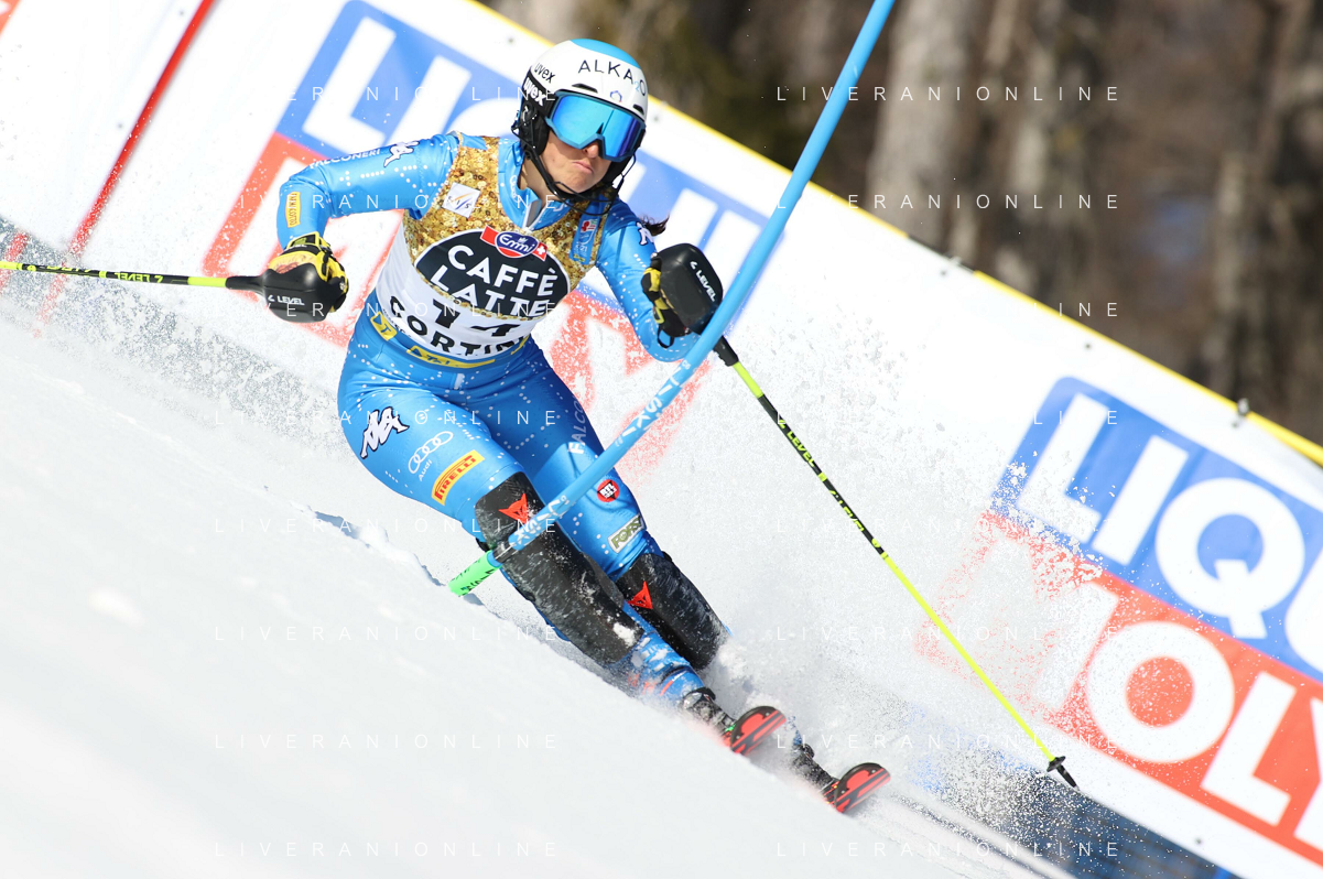 Luca Tedeschi/LM - 2021 FIS Alpine World SKI Championships - Slalom - Women - alpine ski race 20 February 2021 - Druscie, cortina (bl), Italy Photo showing: Austria Katharina Liensberger skies during the first manche @LM/Luca Tedeschi AG ALDO LIVERANI SAS