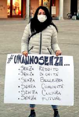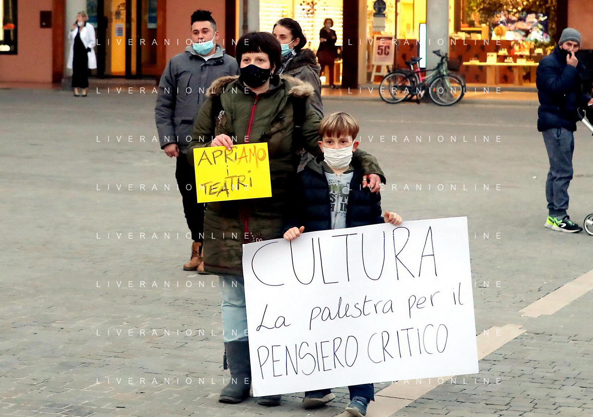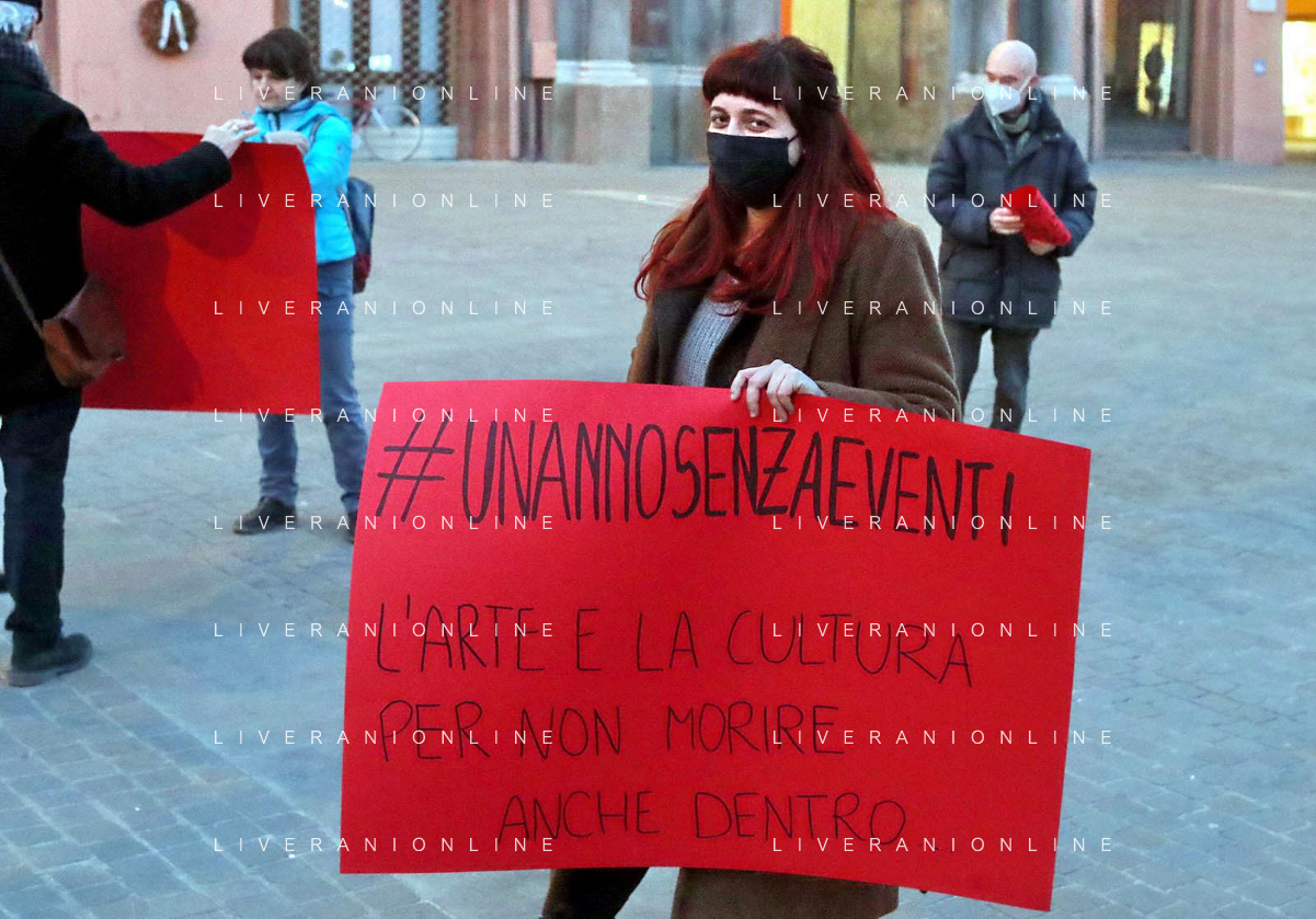 IMOLA 23 02 2021 PROTESTA DEI LAVORATORI DELLO SPETTACOLO IN PIAZZA MATTEOTTI CON LA PRESENZA DI DIPENDENTI TEATRALI ,REGISTI, ATTORI E CANTANTI - 4 file
