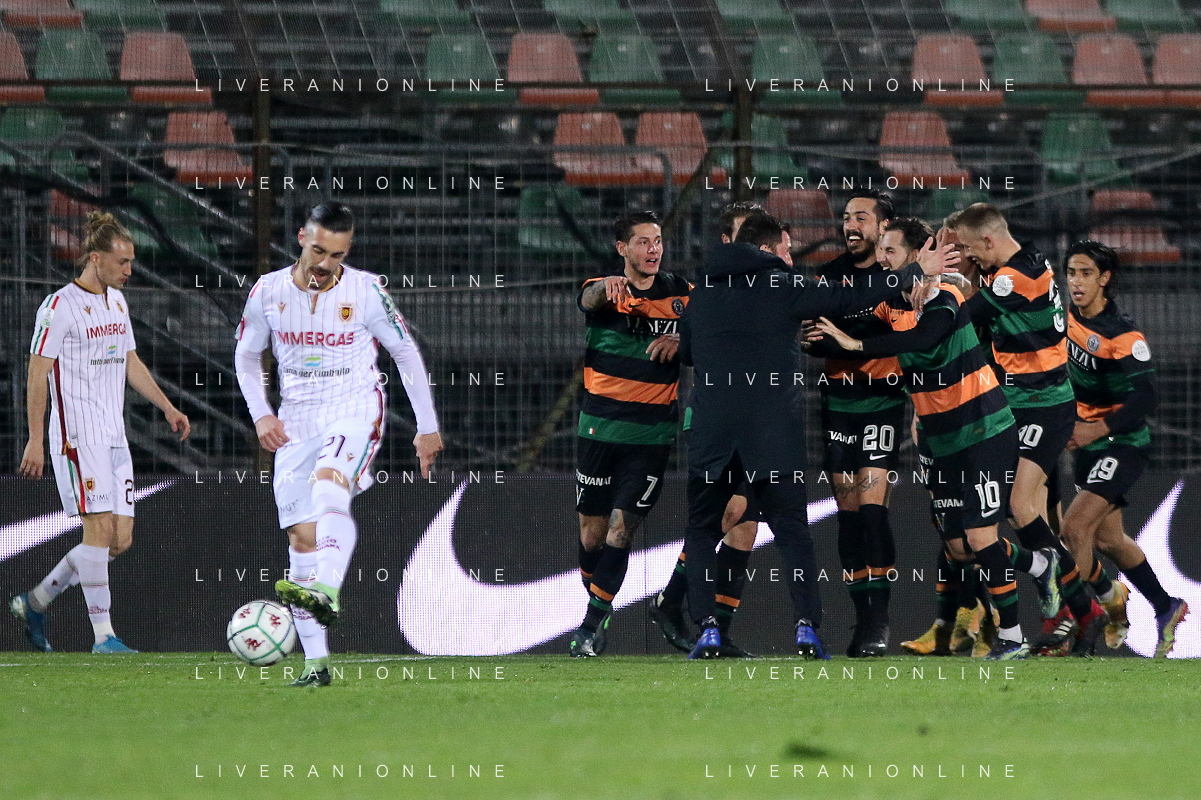 VENEZIA - REGGIANA CAMPIONATO CALCIO SERIE BKT 01.03.2021 NELLA FOTO DELUSIONE DEI GIOCATORI DELLA REGGIANA - ESULTANZA DOPO IL SECONDO GOL DI MATTIA ARAMU /AGENZIA ALDO LIVERANI SAS