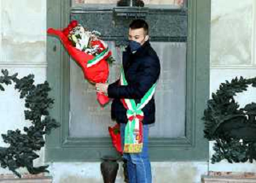 IMOLA 02 03 2021 UN ANNO DALLA SCOMPARSA DEL EX SINDACO DI IMOLA BRUNO SOLAROLI ANPI E IL COMUNE DI IMOLA DEPOSITANO I FIORI ALLA MEMORIA NELLA FOTO SINDACO MARCO PANIERI FOTO GIANNI SANNA-AG ALDO LIVERANI SAS