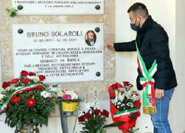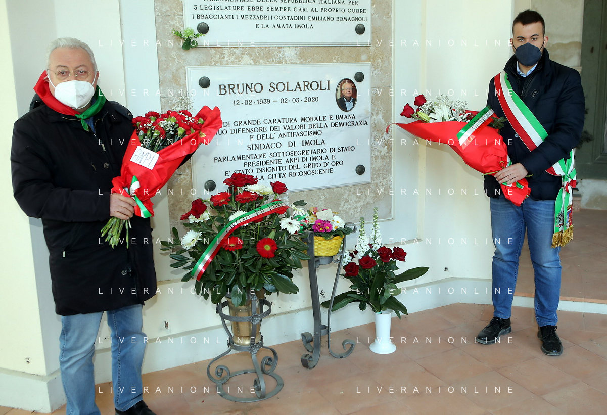 IMOLA 02 03 2021 UN ANNO DALLA SCOMPARSA DEL EX SINDACO DI IMOLA BRUNO SOLAROLI ANPI E IL COMUNE DI IMOLA DEPOSITANO I FIORI ALLA MEMORIA - 3 file