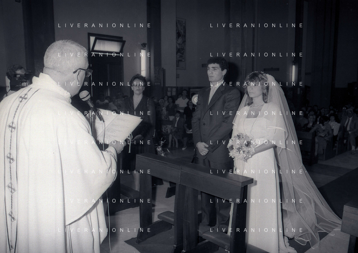 NEG-RETROSPETTIVA PATRIZIO OLIVA PUGILE NELLA FOTO PATRIZIO OLIVA IL GIORNO DEL SUO MATRIMONIO NELL'ANNO 1982 LA MOGLIE SILVANA CAIAZZO AG ALDO LIVERANI SAS