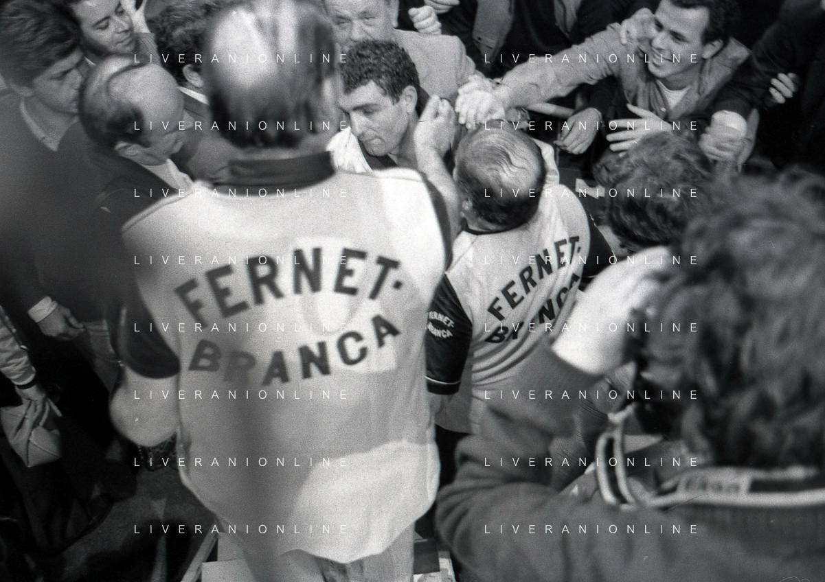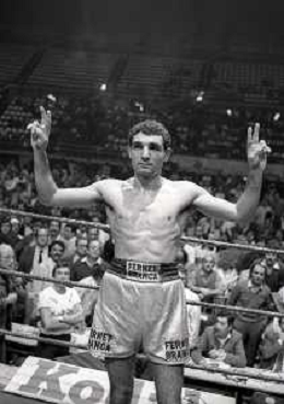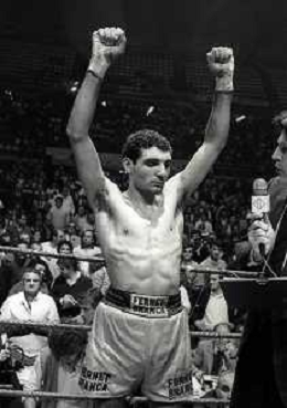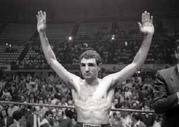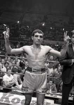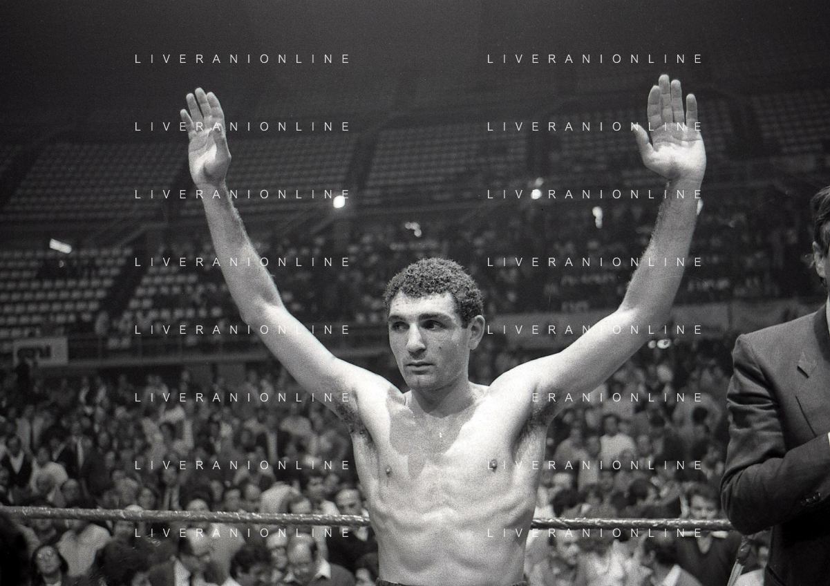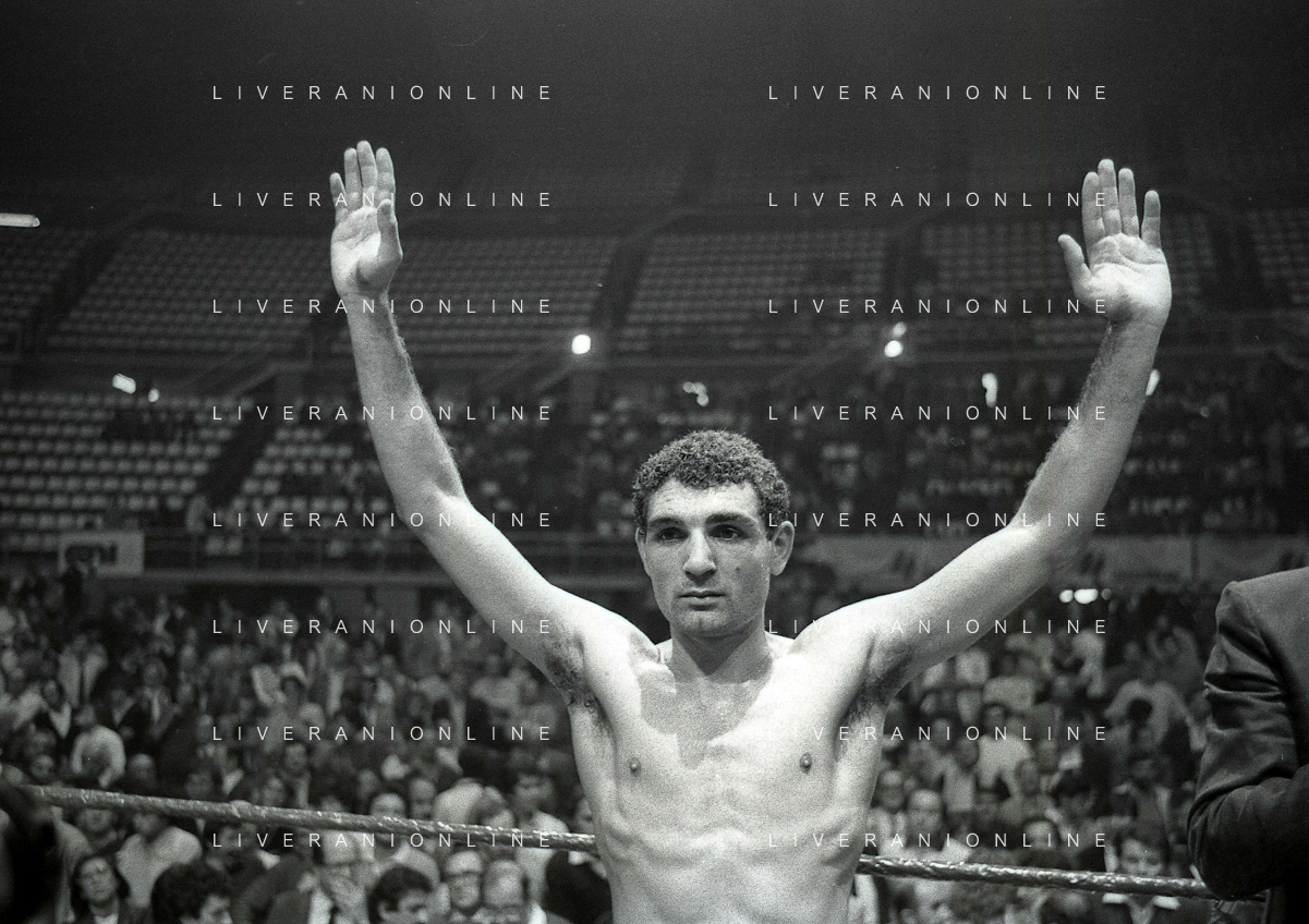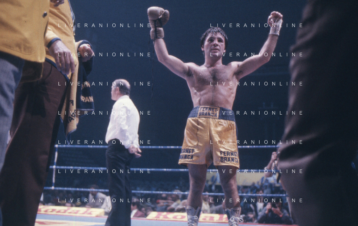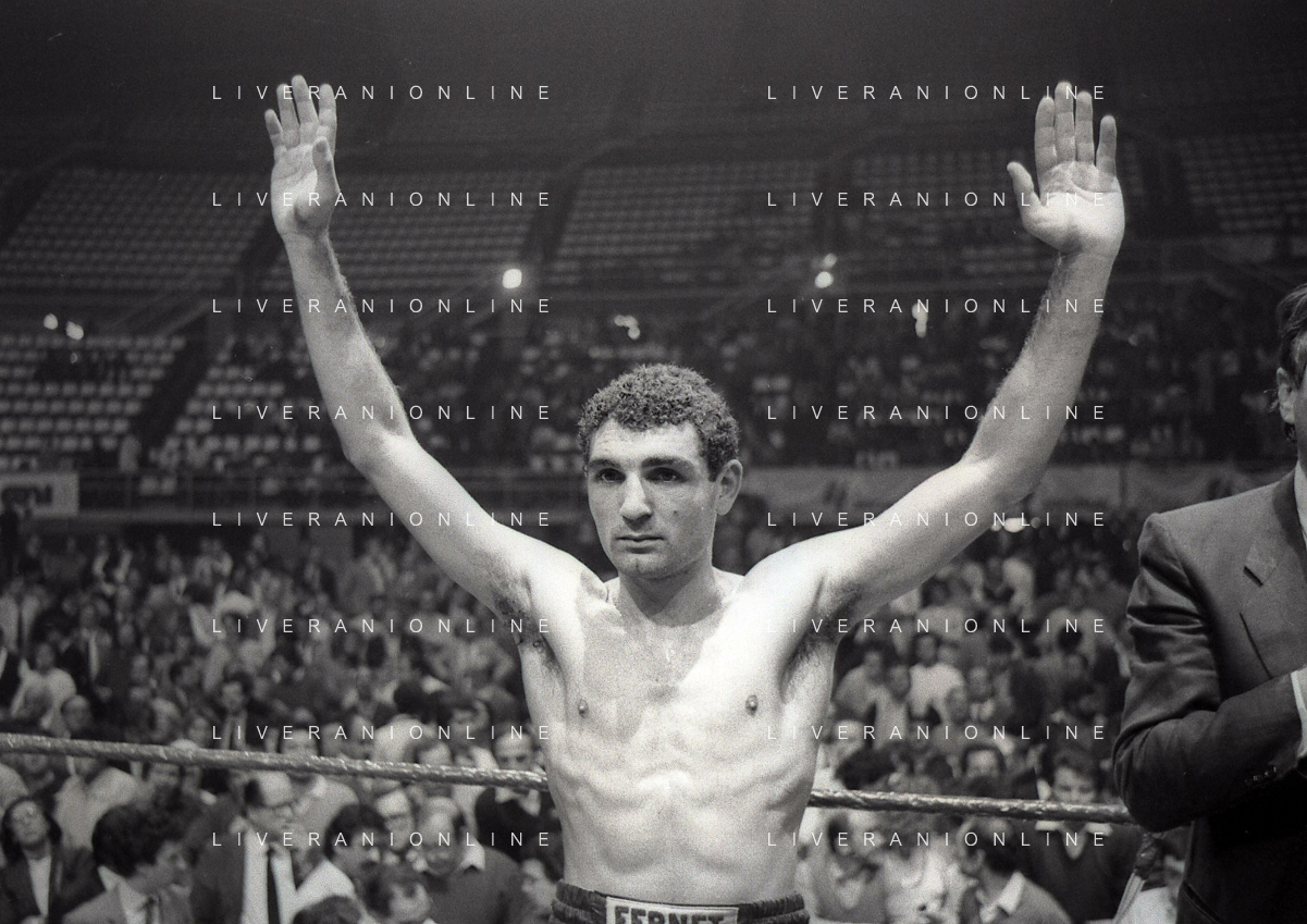 14-10-1983 MILANO CAMPIONATO EUROPEO DI PUGILATO INCONTRO TRA PATRIZIO OLIVA E JUAN JOSE' GIMENEZ NELLA FOTO PATRIZIO OLIVA VINCITORE DELL'INCONTRO AG ALDO LIVERANI SAS