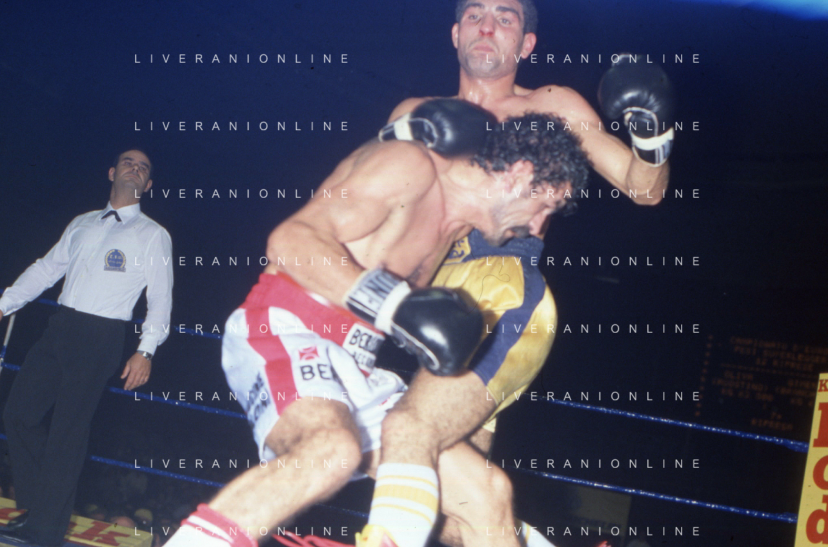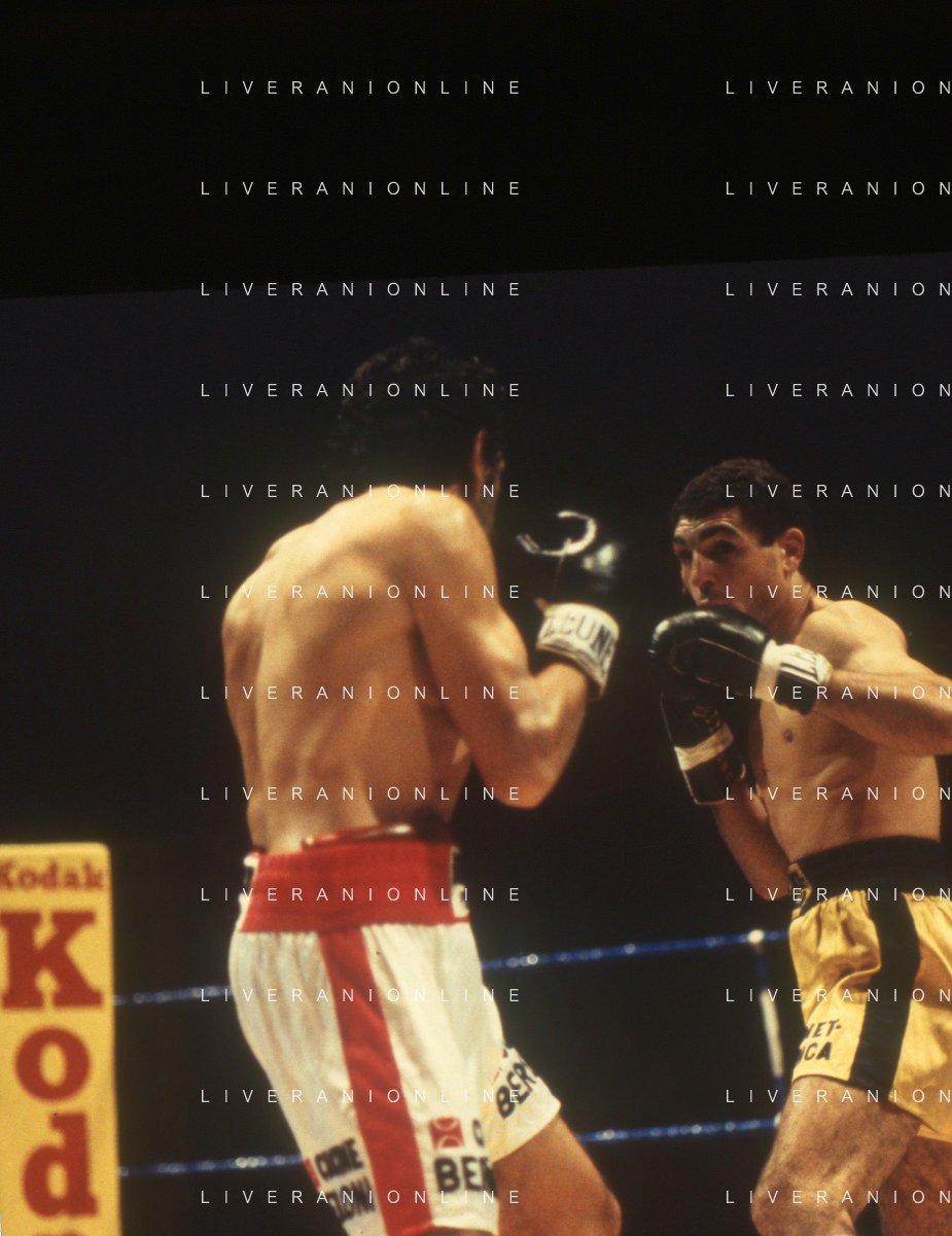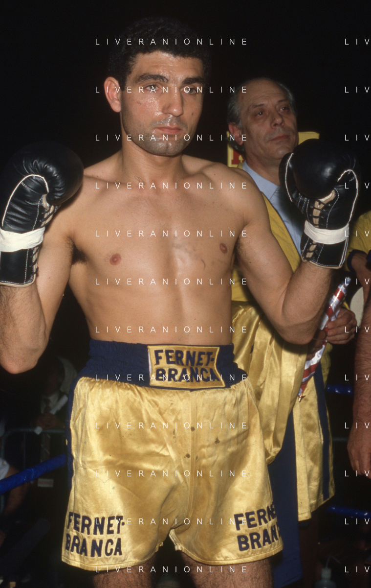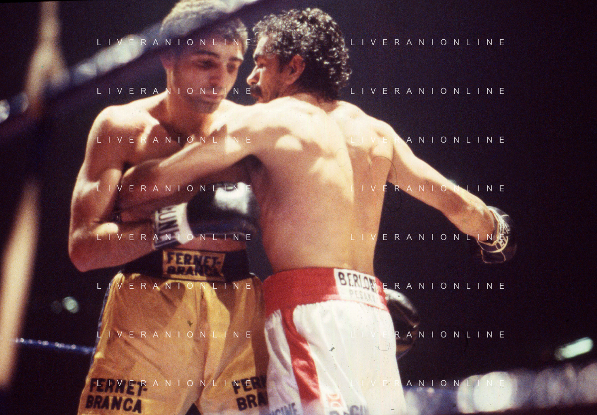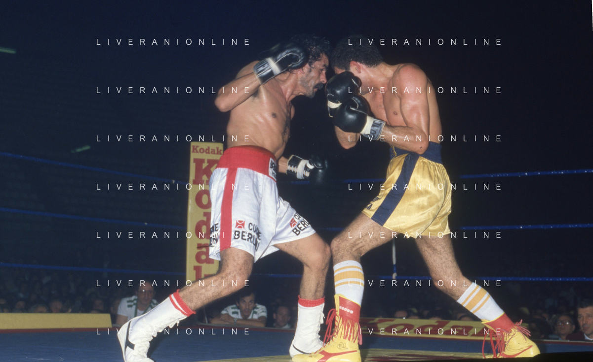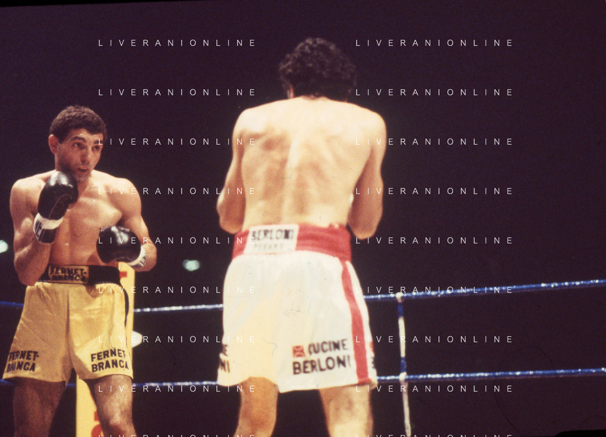 DIAP-RETROSPETTIVA PATRIZIO OLIVA PUGILE NELLA FOTO PATRIZIO OLIVA CONTRO UAN JOSE GIMENEZ AL PALAZZO DELL OSPORT DI MILANO IL GIORNO 14-10-1983 INONTRO VALIDO PER IL CAMPIONATO EUROPEO AG ALDO LIVERANI SAS