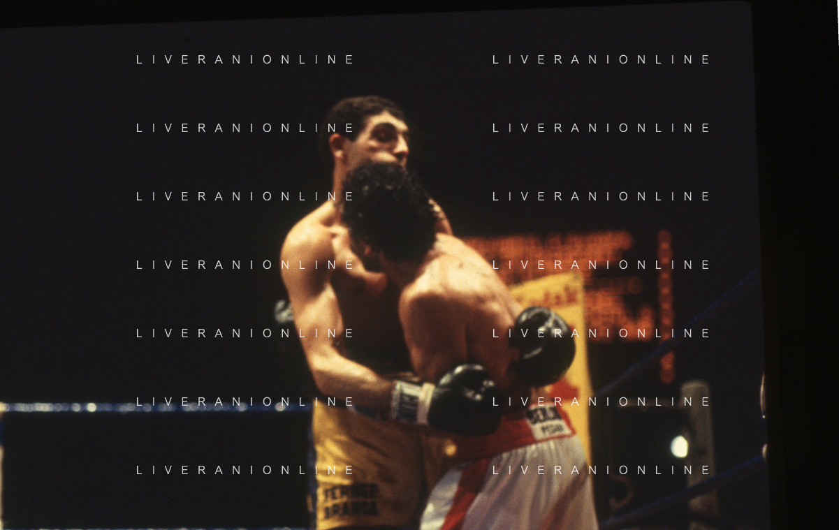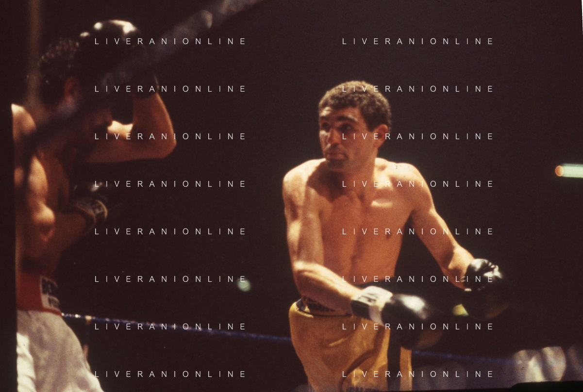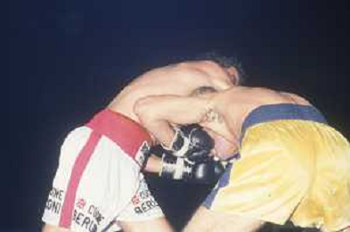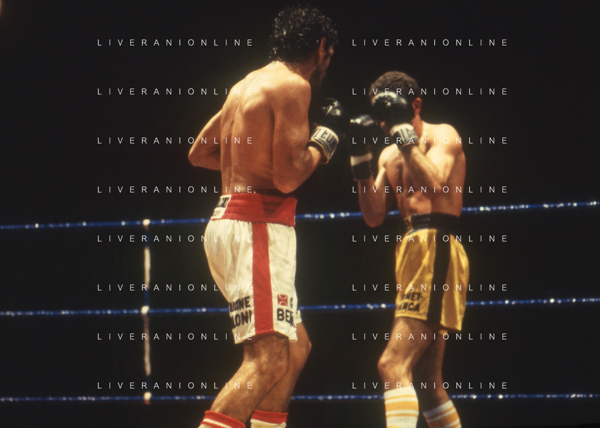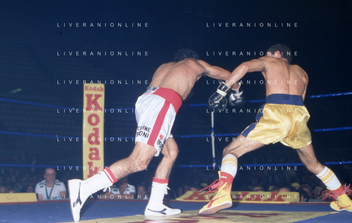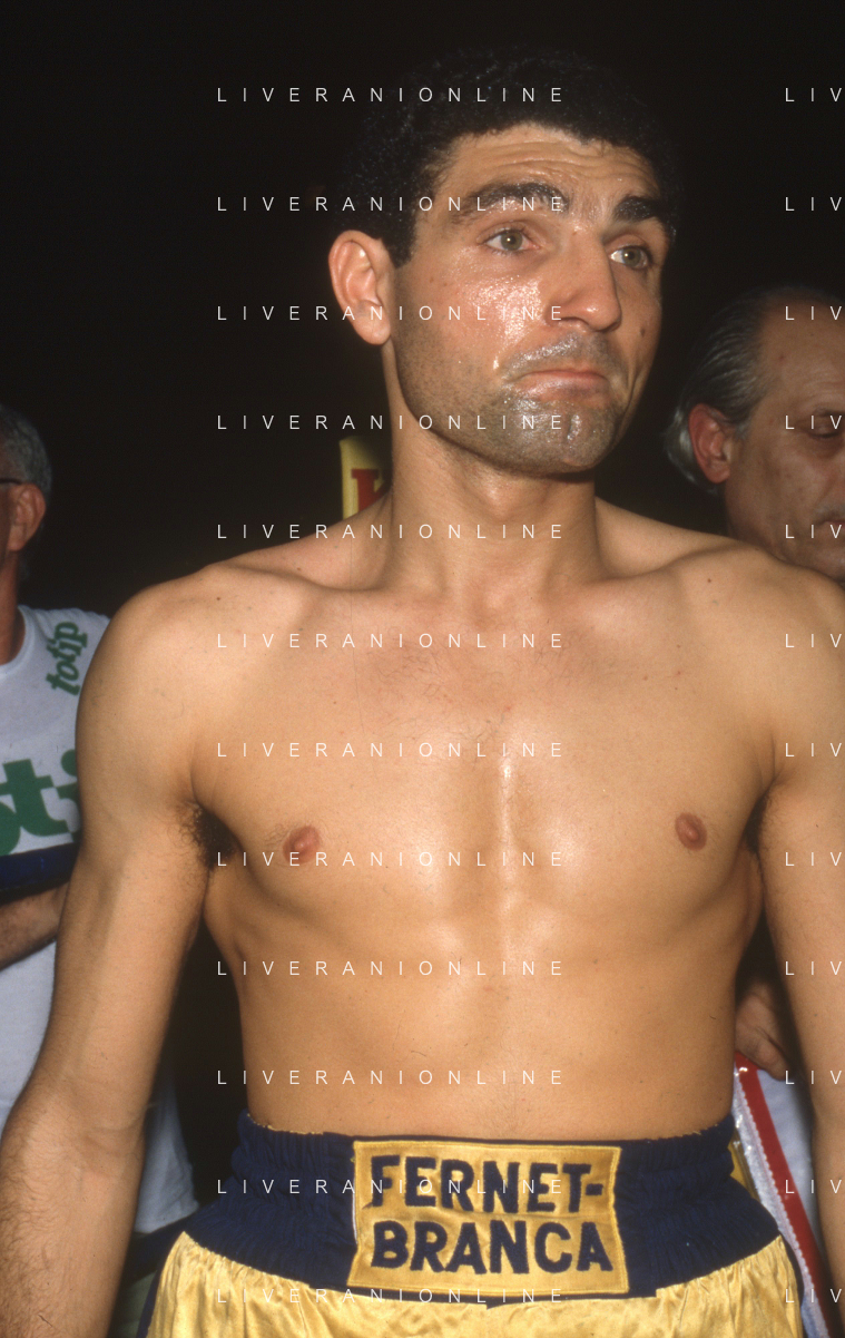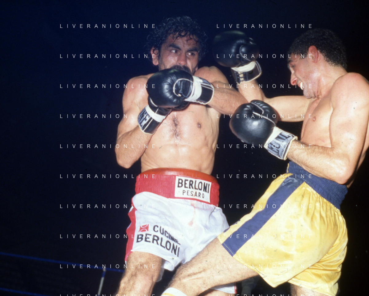 DIAP-RETROSPETTIVA PATRIZIO OLIVA PUGILE NELLA FOTO PATRIZIO OLIVA CONTRO UAN JOSE GIMENEZ AL PALAZZO DELL OSPORT DI MILANO IL GIORNO 14-10-1983 INONTRO VALIDO PER IL CAMPIONATO EUROPEO AG ALDO LIVERANI SAS