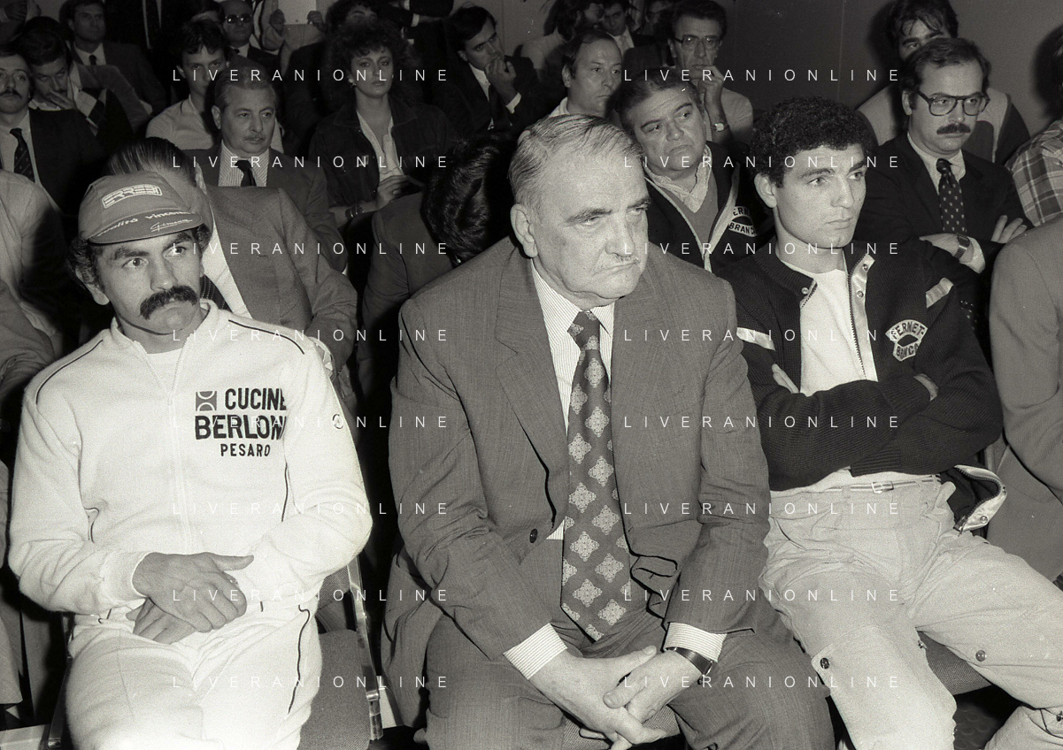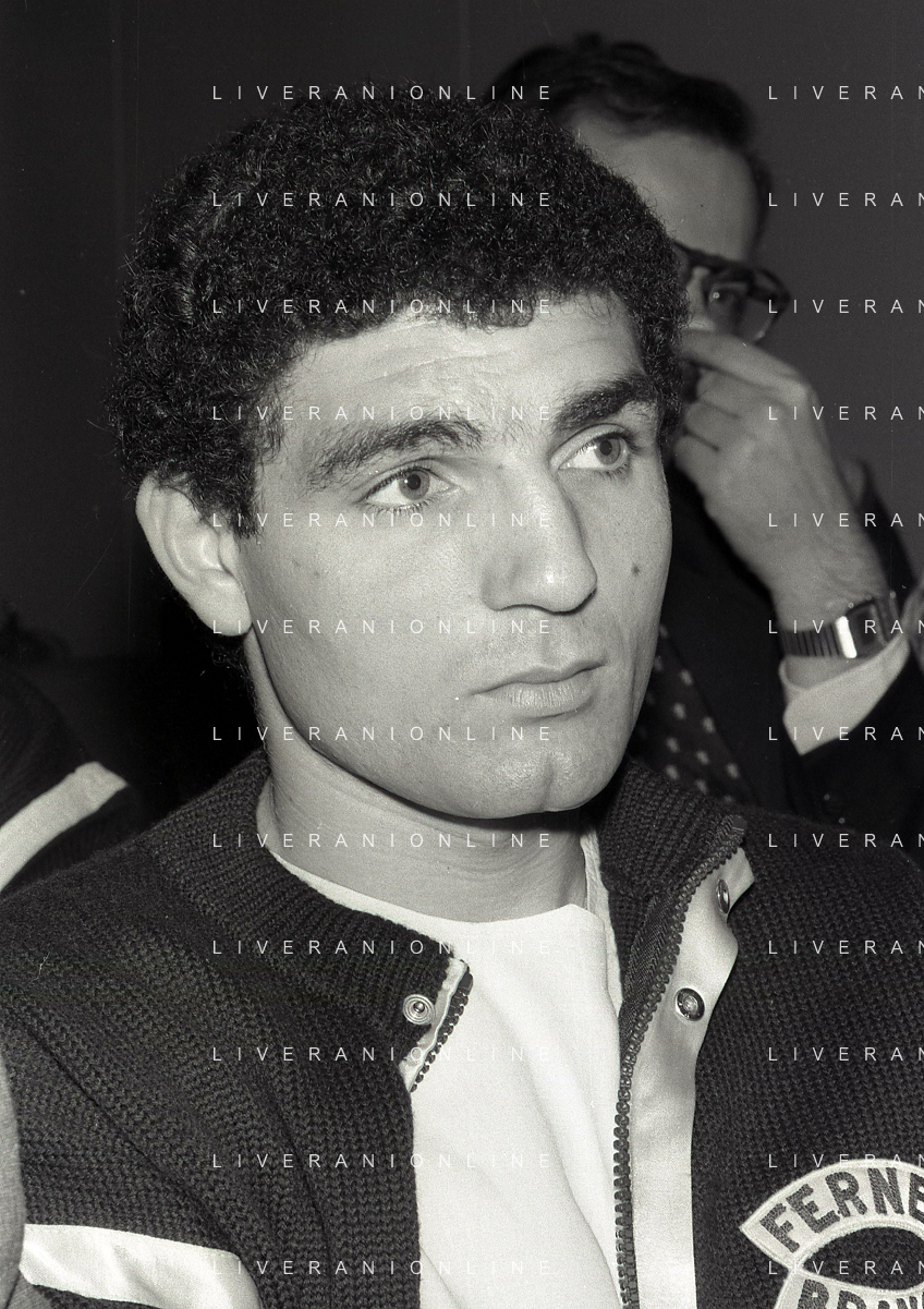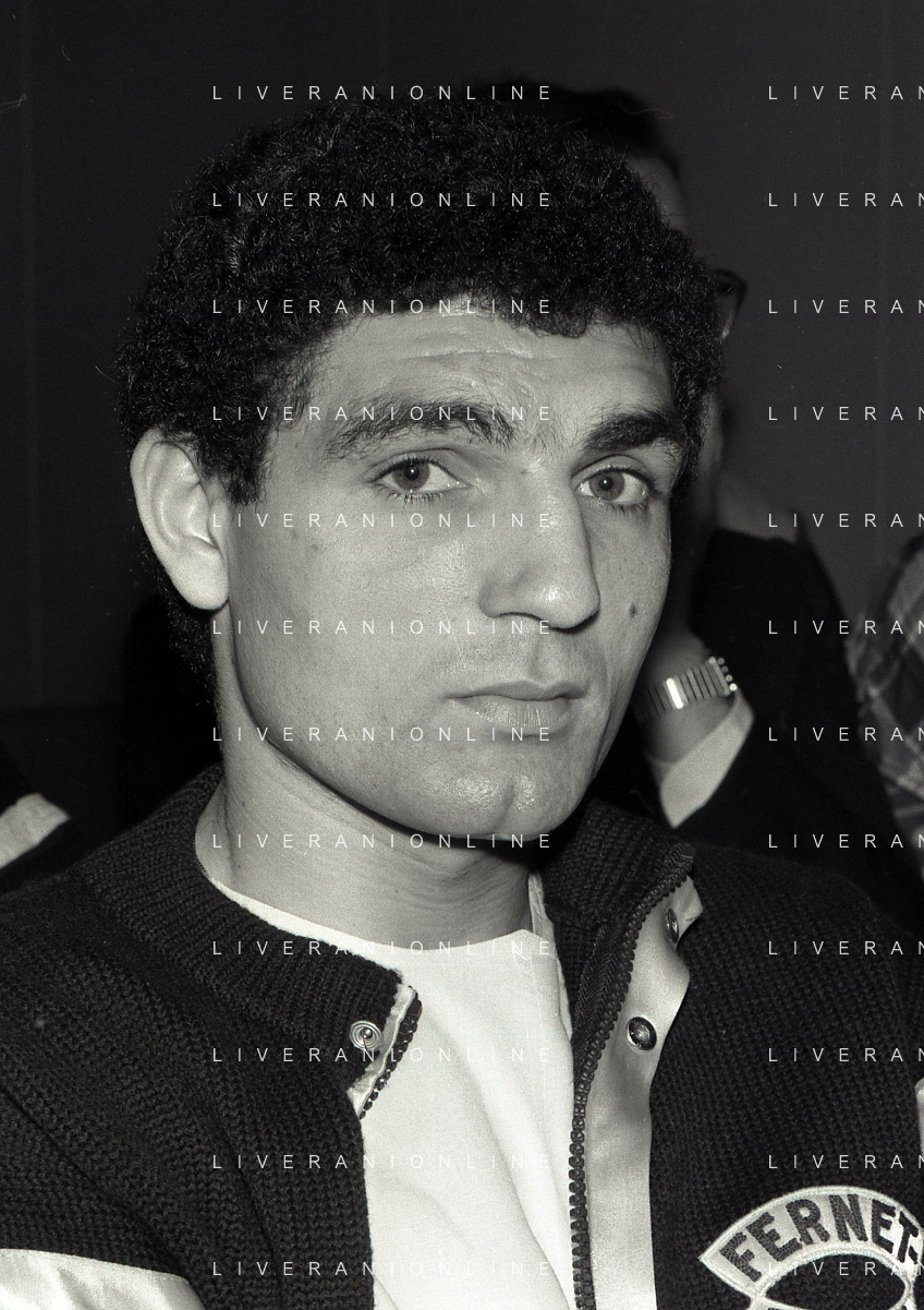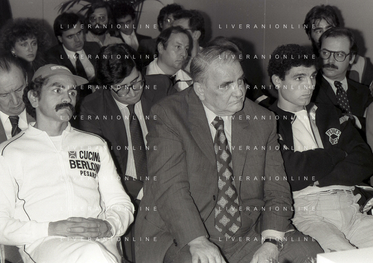 14-10-1983 MILANO CAMPIONATO EUROPEO DI PUGILATO INCONTRO TRA PATRIZIO OLIVA E JUAN JOSE' GIMENEZ NELLA FOTO PATRIZIO OLIVA ALLA CONFERENZA STAMPA AG ALDO LIVERANI SAS