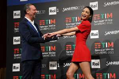 Amadeus ed Elodie 71mo Festival della Canzone Italiana Sanremo 2021 - Photocall del 3 marzo Casino’ Municipale - Sanremo (IM) 03-03-2021 foto Roberto Garavaglia/ag. Aldo Liverani sas
