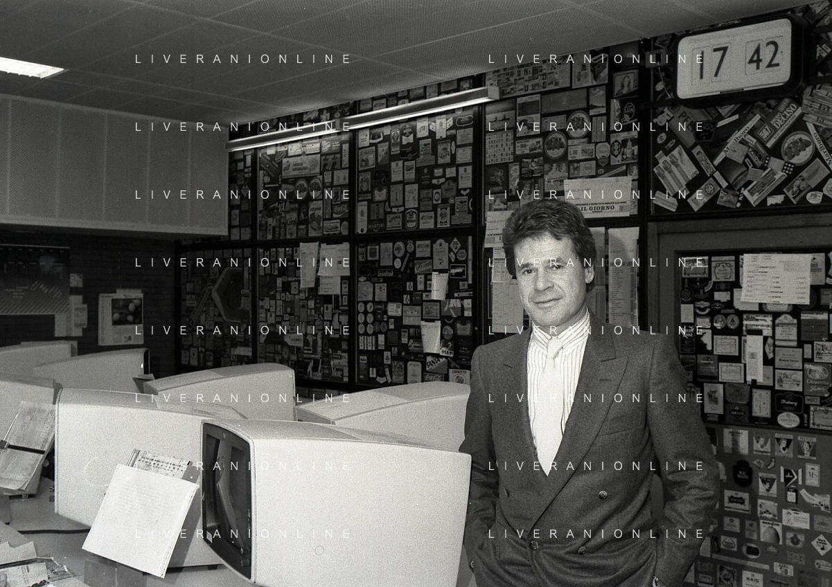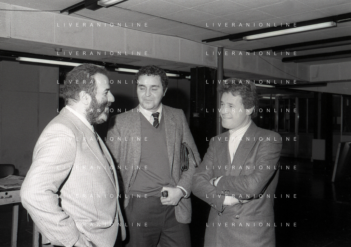 1983 RETROSPETTIVA GIANNI NARDI VICE PRESIDENTE MILAN CALCIO NELLA FOTO GIANNI NARDI VICE PRESIDENTE DEL MILAN CALCIO VISITA LA REDAZIONE DEL QUOTIDIANO IL GIORNO AG ALDO LIVERANI SAS