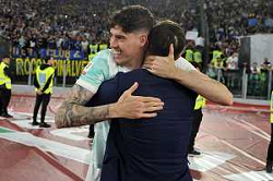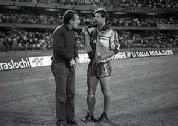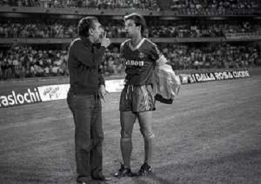 12-06-1985 VERONA QUARTI DI FINALE DI ANDATA DI COPPA ITALIA VERONA INTER 3-0 NELLA FOTO OSVALDO BAGNOLI CON FABIO MARANGON AG ALDO LIVERANI SAS