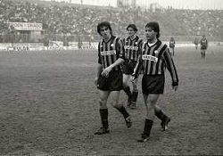 12-06-1985 VERONA QUARTI DI FINALE DI ANDATA DI COPPA ITALIA VERONA INTER 3-0 NELLA FOTO FRANCO CAUSIO E KARL HEINZE RUMMENIGGE AG ALDO LIVERANI SAS