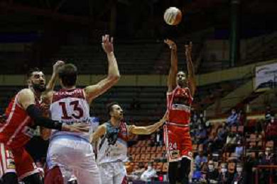Unieuro Forlì vs N.P.C. Rieti - Campionato di Basket A2 - 03/03/2021 nella foto: Rodriguez Yancarlos - Landi Aristide - Roderick Terrence ©Claudio Zamagni/Agenzia Aldo Liverani