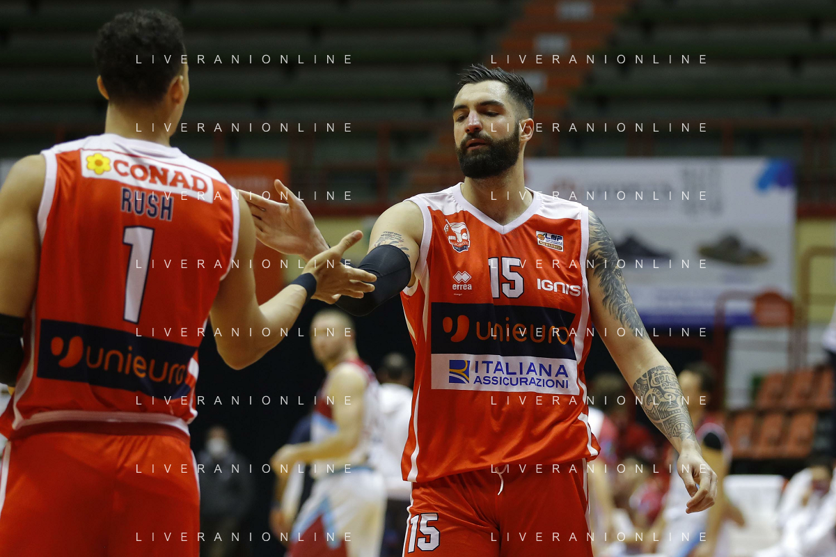 Unieuro Forlì vs N.P.C. Rieti - Campionato di Basket A2 - 03/03/2021 nella foto: Landi Aristide - Rush Erik ©Claudio Zamagni/Agenzia Aldo Liverani
